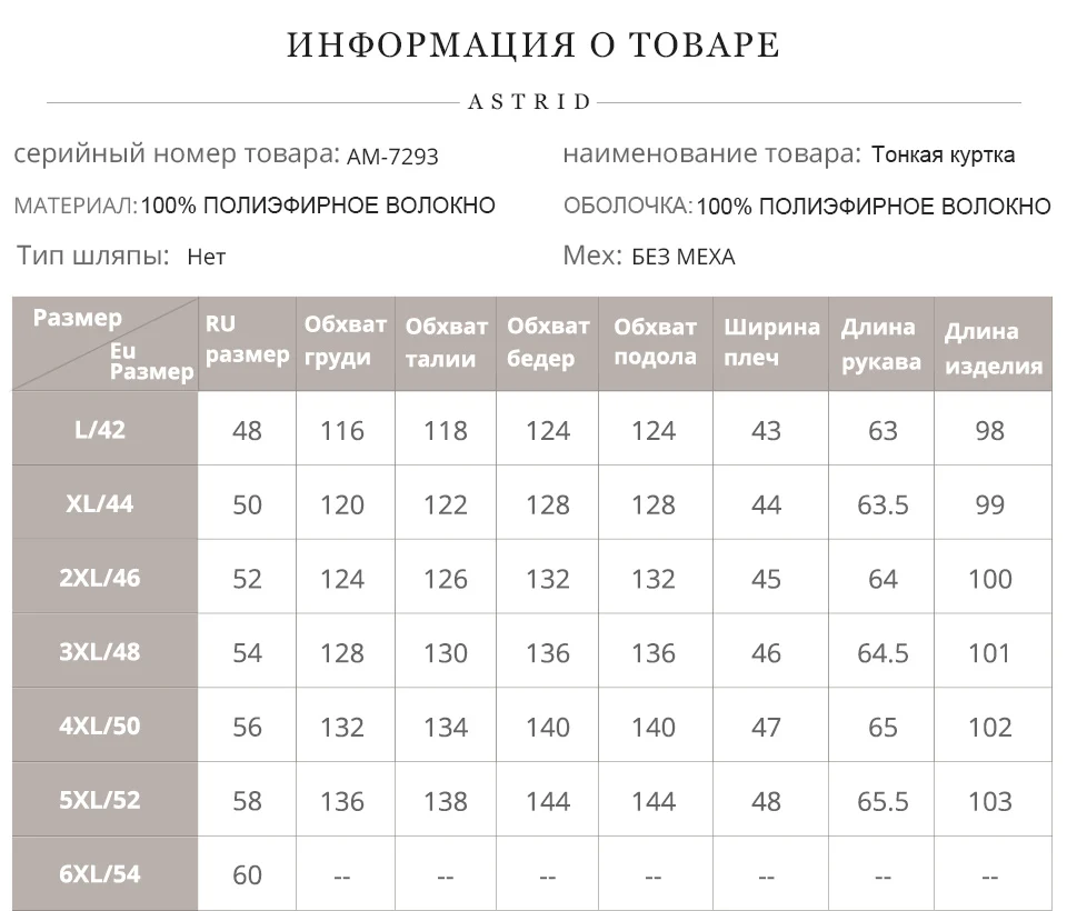 Astrid 2022, весенние женские парки больших размеров, Короткие стег...