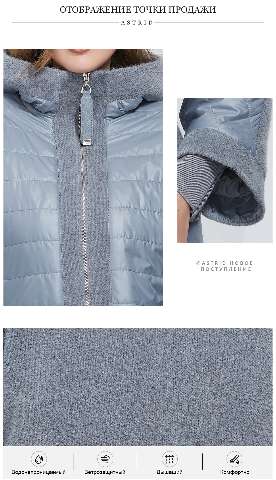Astrid 2022, весенние женские парки, большие стеганые пальто с капюшоном из норкового флиса, Женская Стеганая куртка, верхняя одежда AM-9403