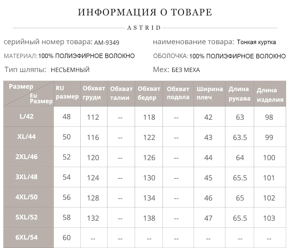 Astrid 2022, весенние женские парки больших размеров, Короткие стег...
