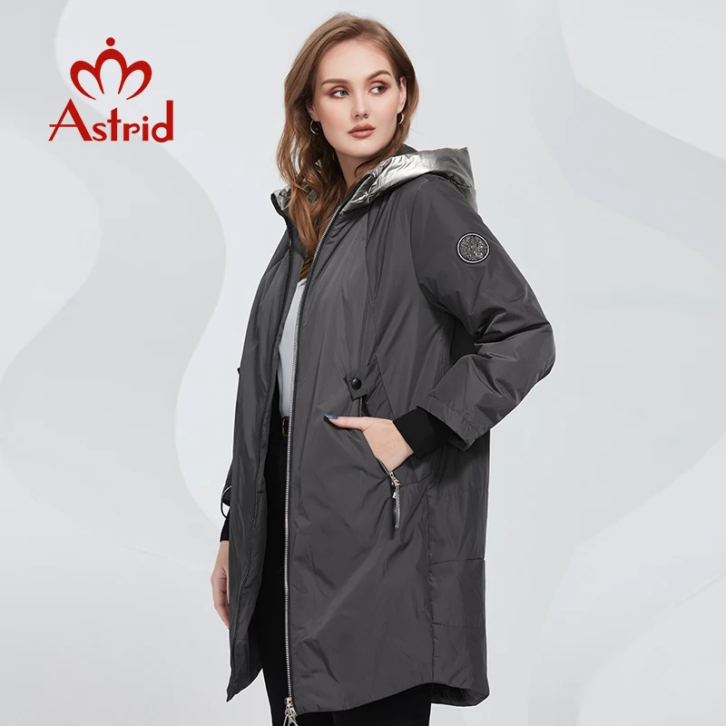 Astrid 2022, весенние пальто, женские парки, большие размеры, длинная теплая одежда на молнии с капюшоном и карманами, Женская куртка, верхняя одежда AM-9349