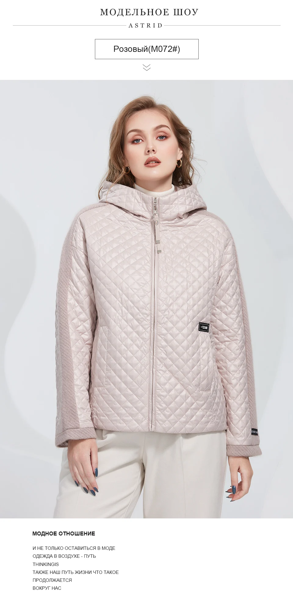 Astrid 2022, весенние женские парки, стеганые пальто со стразами, свитер с капюшоном, стеганая куртка, верхняя одежда AM-10109