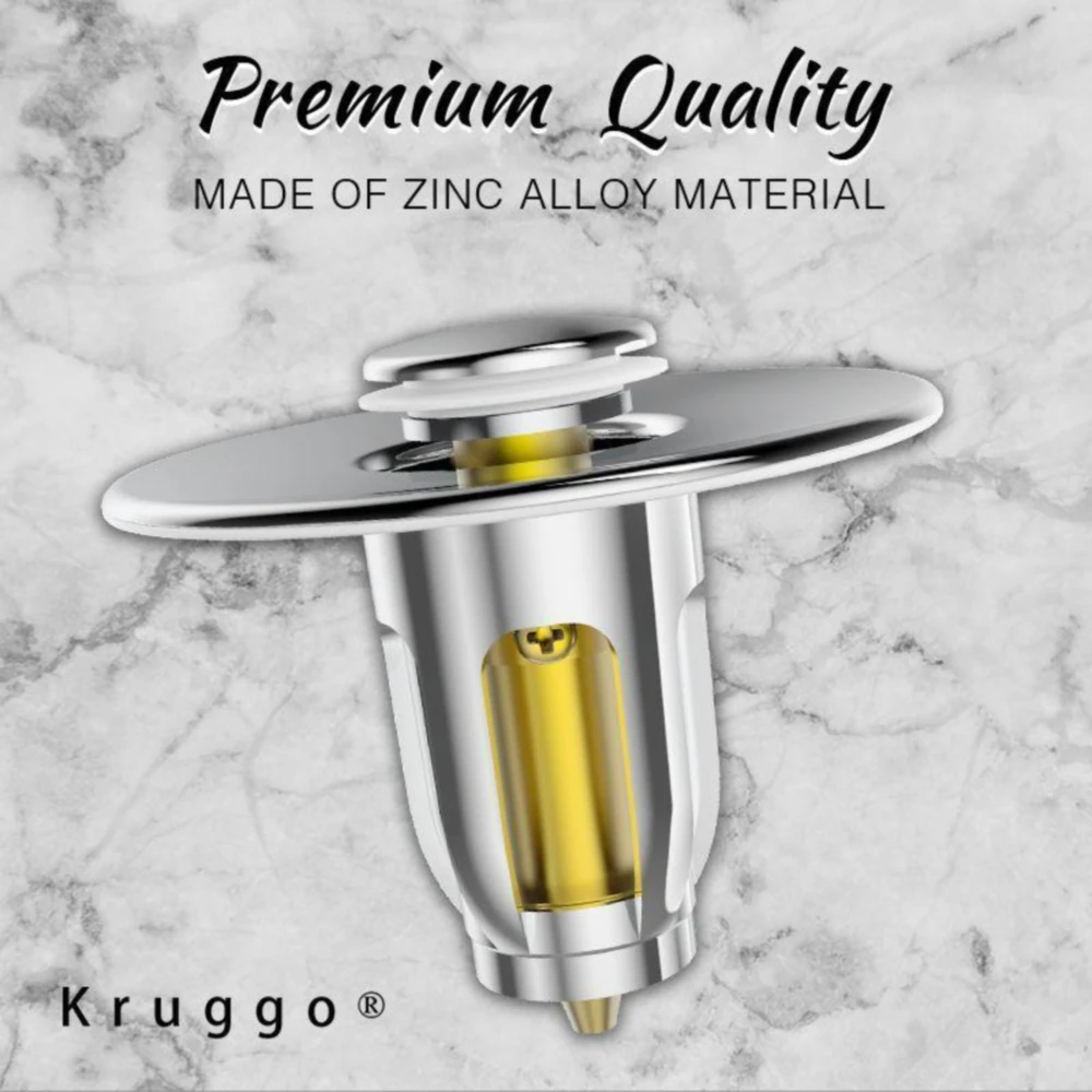 Kruggo®Всплывающая пробка для раковины ванной комнаты спроектирована с внутренним хорошо организованным сетчатым ситом, который аккуратно Собирает волосы, ювелирные изделия, грязь и что угодно, Предотвращает засорение слива.