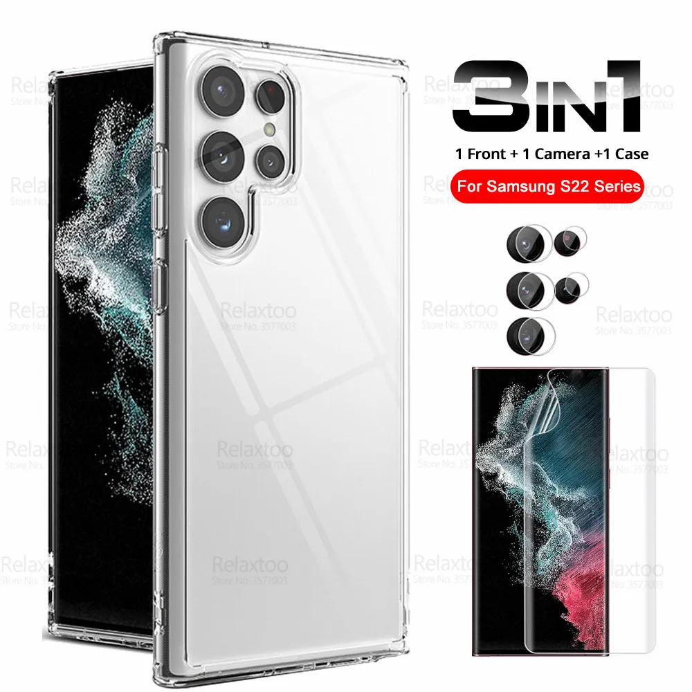 Гидрогелевая пленка 3 в 1 для Samsung Galaxy S22 Ультра чехол прозрачный мягкий чехол Sumsung S 22 Plus S22Ultra защита экрана стекло для камеры