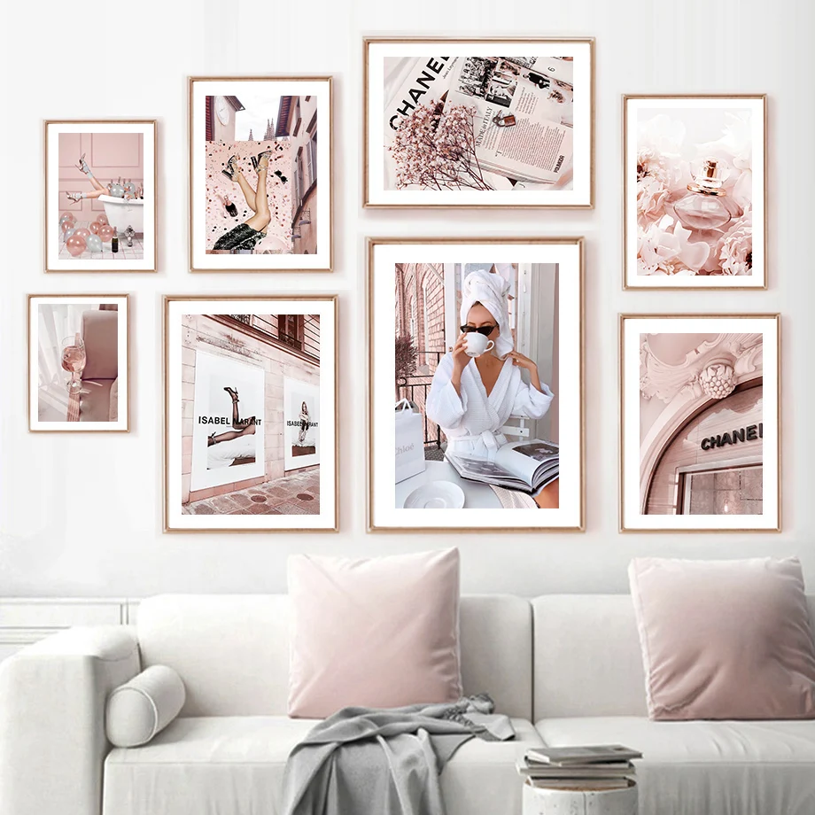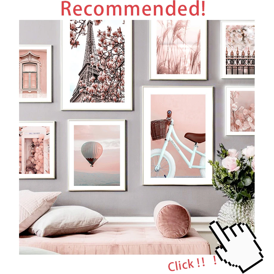 Розовый Париж башня подоконник цветок Автомобиль Велосипед скандина...