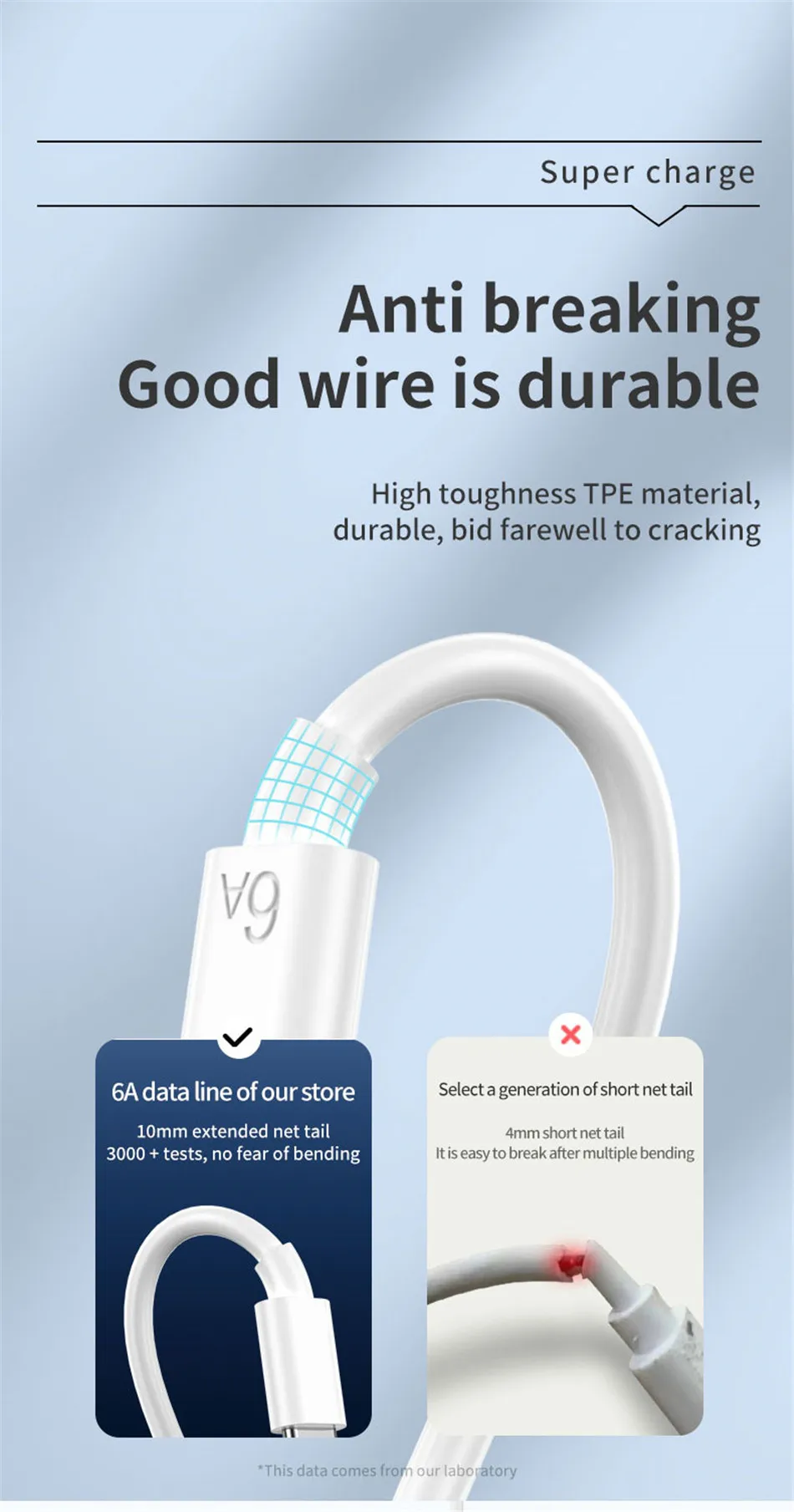 66W 6A USB Type C Cable Сверхбыстрые кабели для Huawei Xiaomi Mi 12...
