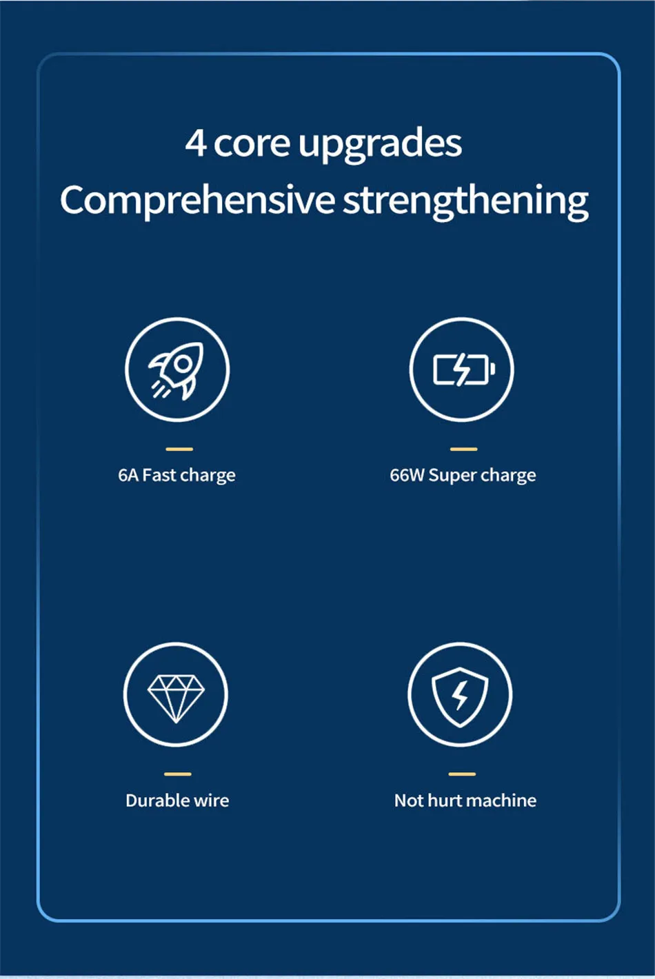 USB-кабель USB Type-C, 66 Вт, 6 А, для быстрой зарядки телефонов