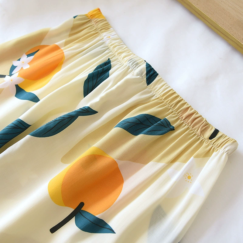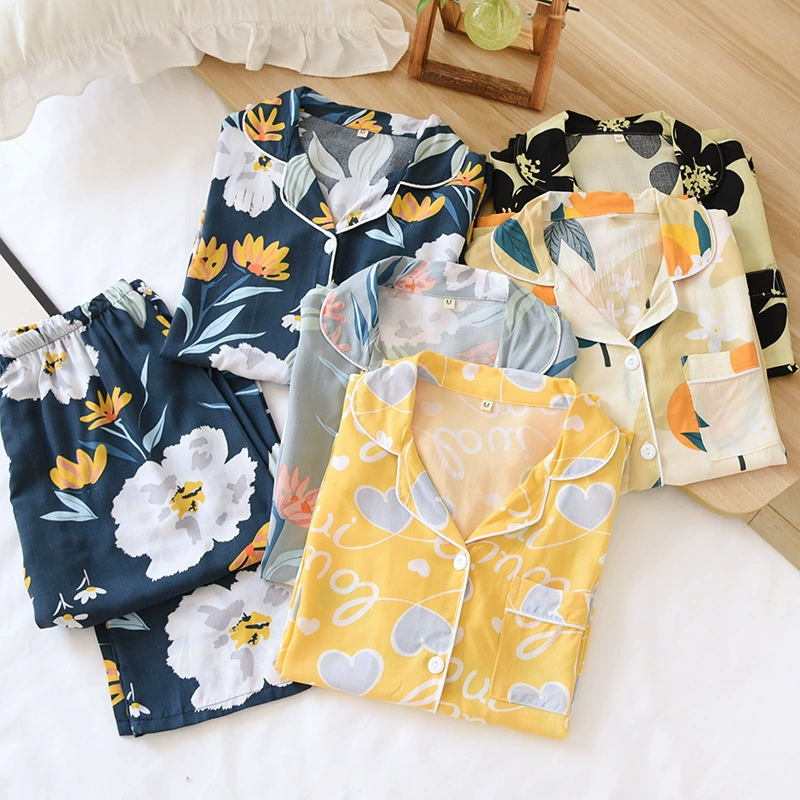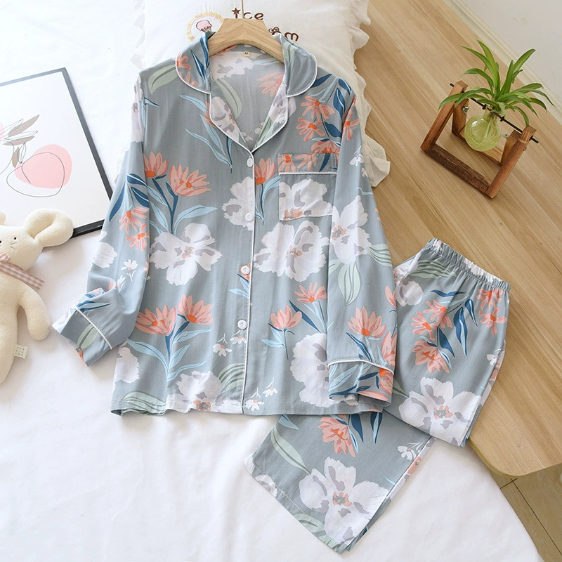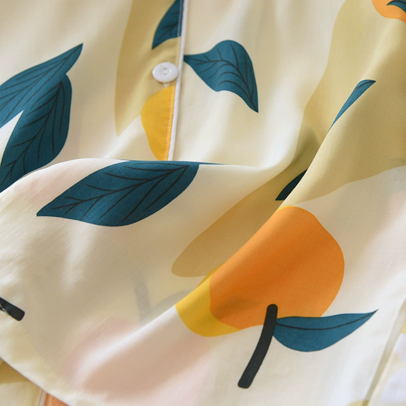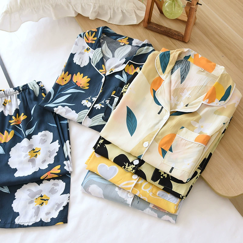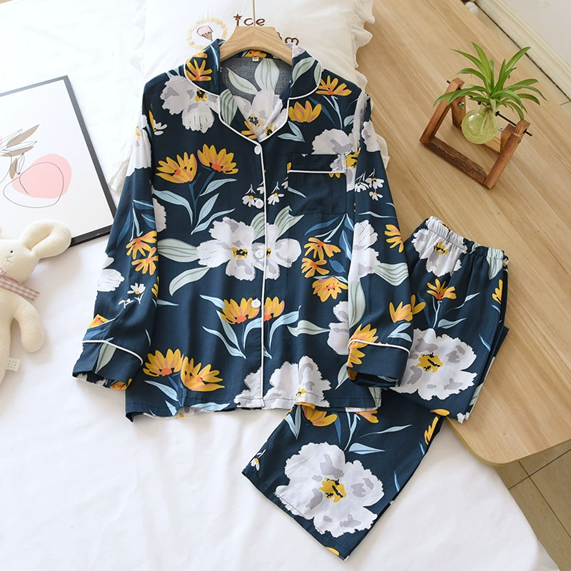 Весенняя вискозная пижама с длинным рукавом, одежда для сна с принтом и лацканами, комплект из двух предметов, летняя одежда для отдыха, свободная Пижама для женщин, домашняя одежда
