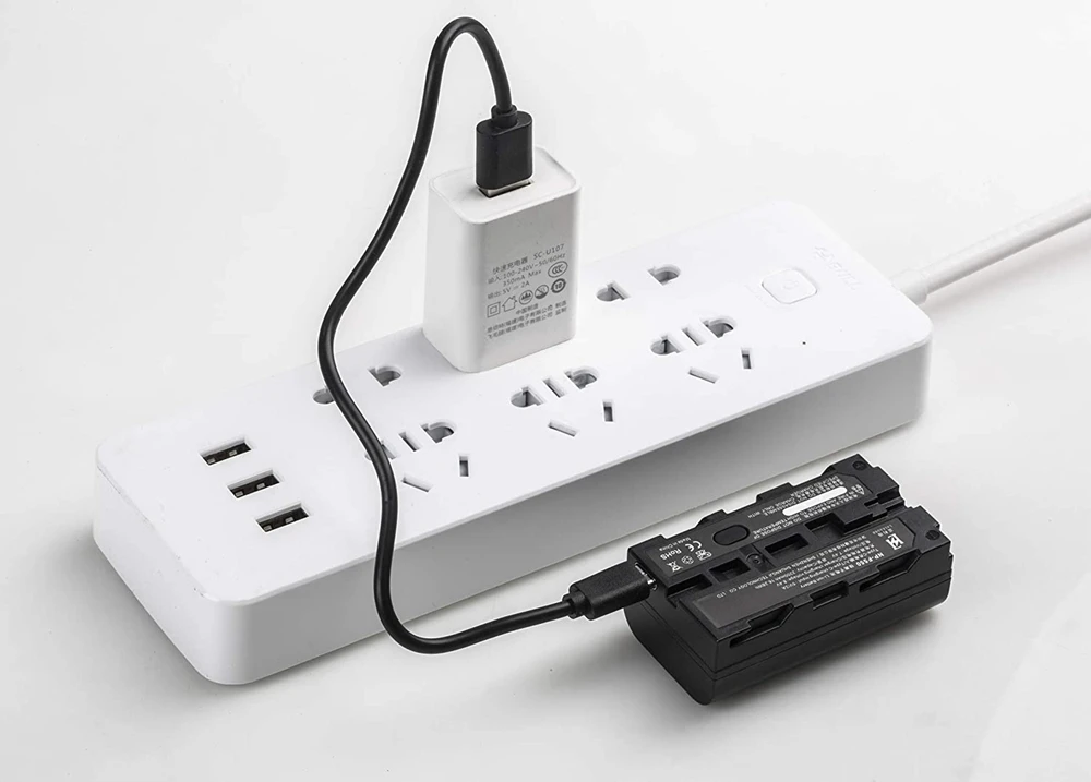 Возможно, вы получили новейшую модель батареи F550. И зарядил его кабелем USB Type C.Если у вас есть какие-либо вопросы, пожалуйста, свяжитесь с продавцом.