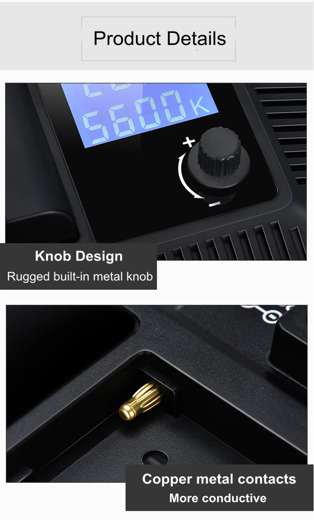 Цифровой ЖК-дисплейЯркость 1%, цветовая температура 100K точно контролирует яркость/цветовая температура дисплея батареи в реальном времени