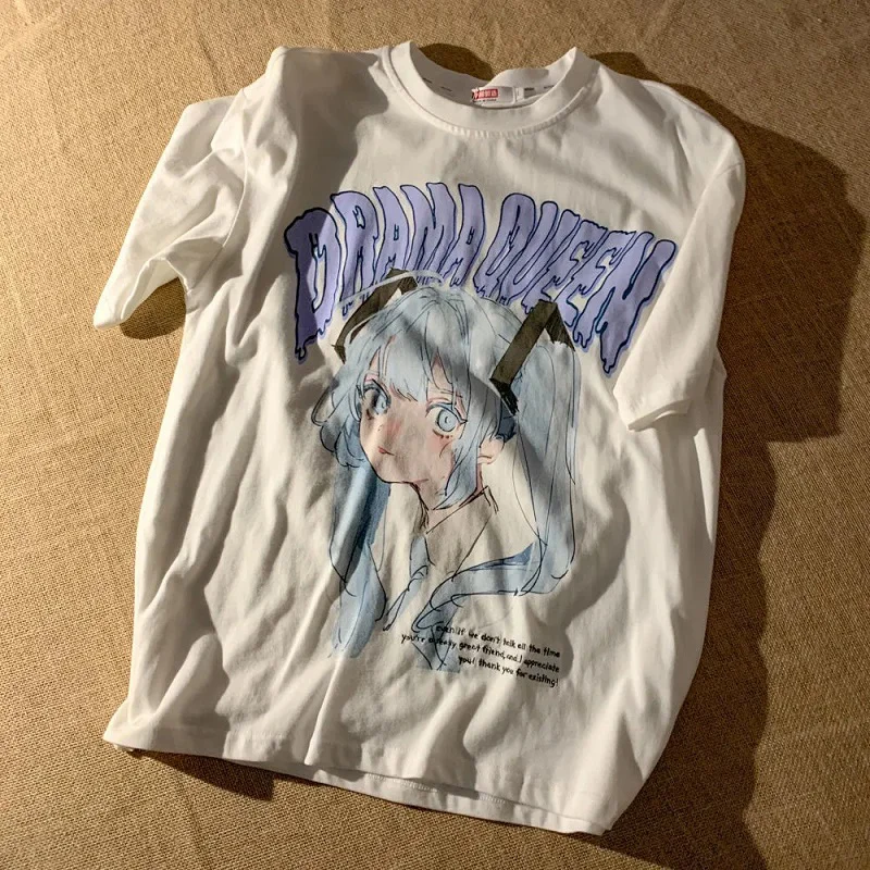 Женские летние футболки в стиле Харадзюку, Готическая женская футболка с японским аниме, волшебные гранж топы, свободные футболки с коротким рукавом Y2k, милая одежда