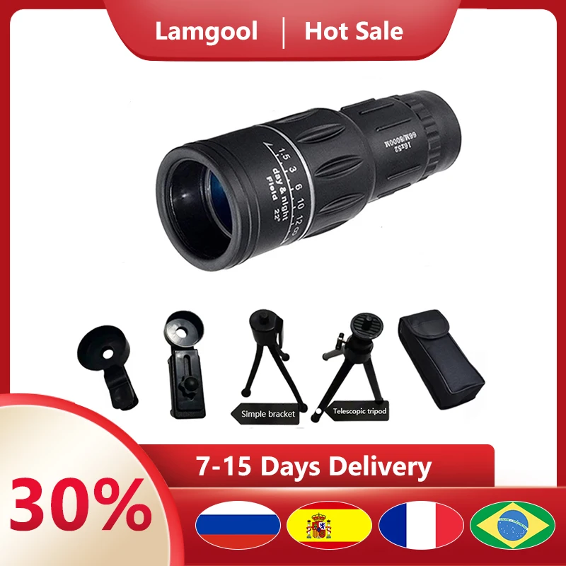 Сверхдлинный спортивный охотничий Монокуляр 16X52 с фокусировкой и ночным видением