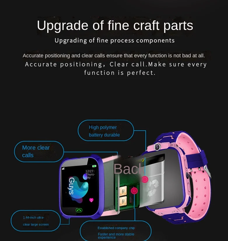 Описание:Особенности:1. Функции: четкий вызов/точное позиционирование/длительный срок службы батареи/Ультратонкий корпус/крутой износ2. 14,1 мм ультра-тонкий процесс проектирования, так же, как и на тонком как домашнюю работуЦвет всей машины великолепен и богат текстурой, всегда позвольте другим детям завидовать.3. Двухсторонний четкий и стабильный вызовЗвук громче и может быть услышан в шумных условиях.Уникальный дизайн антенны, несколько калибровок для обеспечения стабильного вызова4. Голосовой чат, что делает общение более удобнымБолее простая работа и четкий голосПростой групповой чат, поддержка группового чата с несколькими мобильными телефонами5. Точное позиционирование, просмотр в реальном времениТочно записывайте каждый уголок ребенка, полностью удовлетворяя потребности в позиционировании жизни и чрезвычайных ситуациях6. Электронный забор, всегда защищает Безопасность детейУстановите диапазон активности ребенка, когда ребенок покидает установленную область, родительский мобильный телефон получит сигнал тревоги.Предотвращение потери, предотвращение доступа к опасным районам, предотвращение потери7. Высокопроизводительный аккумулятор, более длительное время работы в режиме ожиданияС высокой полимеризацией на заказАккумулятор, он оснащен зарядкой быстрее, высокая производительность, более длительное времяЧем та же мощность, устраняя проблемы с зарядкой каждый день.8. Веселая игра: пусть дети получают счастье от игры и растут в счастье.Спецификация:Чип: PDA8955Емкость аккумулятора: 400 мАчВремя зарядки: 2 чРазрешение дисплея: 128*128Размер дисплея: 1,44Радиация: ниже, чем мобильные телефоны, международные стандарты, не влияет на тело человекаПодходящий возраст: 3-12 летМетод позиционирования: точное позиционирование + позиционирование базовой станцииХарактеристики:Продуманный дизайн, чтобы дети веселились и родители могли следить за своими детьми без уведомления.SOS Вызов, удаленный мониторингГолосовой микро-чатНизкое излучениеЦветной экран для защиты глазLBS позиционирование базовой станции, Beidou позиционирование (без GPS позиционирования)Посылка включает в себя:1 * умные часы1 * USB кабель1 * Руководство пользователя1 * Бесплатный подарок