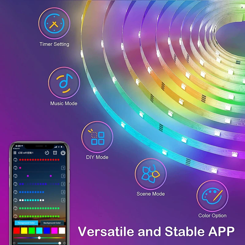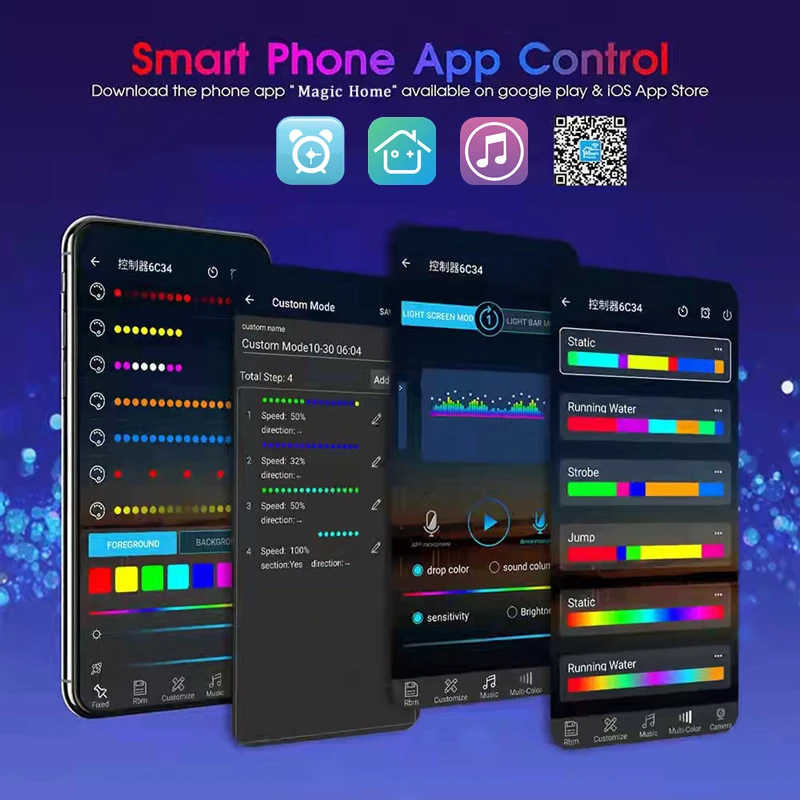 Особенности светильник мечты:1. Поддержка Bluetooth APP управления и инфракрасного дистанционного управления.2. Встроенный микрофон с музыкой и немузыкальными эффектами, мульти-Параметр регулируется.3. Функция автоматического сохранения заданных параметров.Светильник Длина ленты: 1 м/2 м/3 м/4 м/5 м/10 м/15 м/20 м/30 мМетод контроллера:1. Инфракрасный пульт дистанционного управления: без батарей, без функции Bluetooth.2,3 кнопка: Нет дистанционного управления. Нет функции Bluetooth. Только управление с помощью 3 кнопки.3. Телефон Bluetooth: Поддержка только Bluetooth APP control (без пульта дистанционного управления)4. ИК Bluetooth: Поддержка Bluetooth APP управления и инфракрасный пульт дистанционного управления.Зарядка: USB (без адаптера).Водонепроницаемость: IP20 не является водонепроницаемым.● Светодиодный светильник DreamColor бар: наш светодиодный светильник для музыки использует Улучшенный чип IC, который может быть красочным, как радуга сразу, с эффектами чеканки, прыжков и мигания. Более необычный и яркий, чем светодиодный RGB освещение.● Множество режимов изменения цвета: он поставляется с 18 режимами изменения цвета музыки и 142 режимами изменения цвета без музыки, которые являются яркими и красивыми. Он может автоматически изменить цвет или изменить цвет в соответствии с вашей командой в режиме non-music.● Статические цвета и яркость регулируются: если вы не хотите, чтобы музыкальный режим, настройте его на статический цвет, используемый для настройки освещения, например, белый, красный, зеленый, синий, И т. д. Яркость любого цвета можно регулировать.● Несколько приложений:1. Может использоваться для украшения автомобилей и велосипедов, рамы или контурного освещения.2. Широко используется для улучшения дома, гостиниц, клубов, торговых центров.3. Архитектурное декоративное освещение, изысканное освещение настроения.4. Широко используется для подсветки, скрытого освещения и освещения слотов.5. Аварийное и безопасное освещение, рекламный знак освещения.6. Декоративное освещение для фестивалей, мероприятий и выставок.