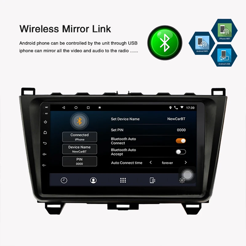 --- Bluetooth телефон: Поддержка ответа/совершения звонков, поддержка чтения телефонной книги на мобильный телефон.