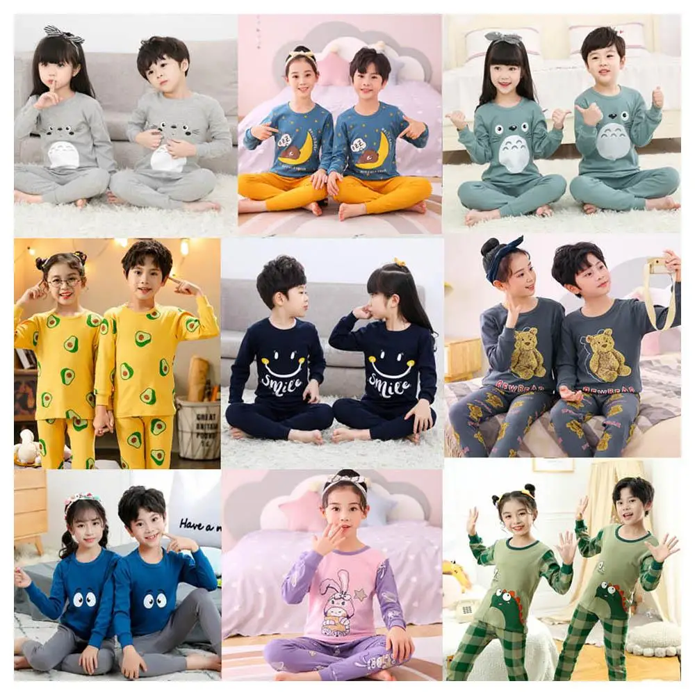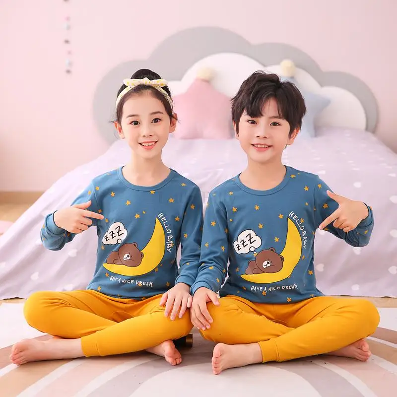 Весенне-осенние пижамные комплекты с длинными рукавами для мальчиков и девочек подходит для детей 2, 3, 4, 5, 6, 7, 8 От 9 до 14 лет