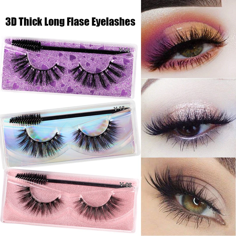 1 пара 3D натуральные длинные различные толстые черные накладные ресницы полоски тонкие красивые накладные ресницы Набор для наращивания с кисточкой