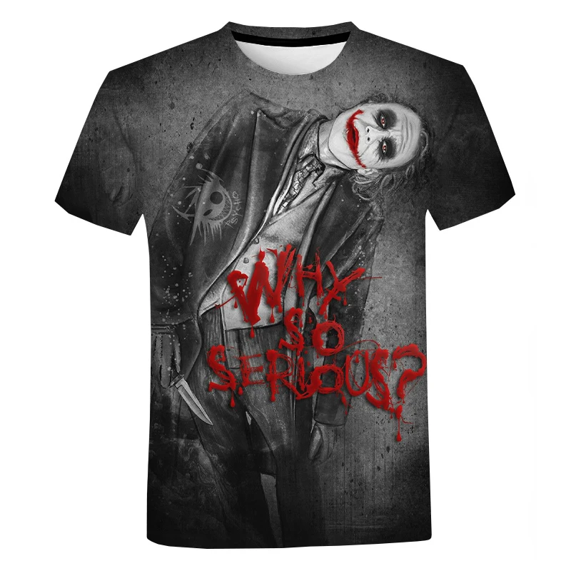 Футболка Джокер с принтом для мужчин и женщин, модная повседневная футболка клоуна с коротким рукавом и фильмом ужасов, уличная одежда в стиле Харадзюку, забавная