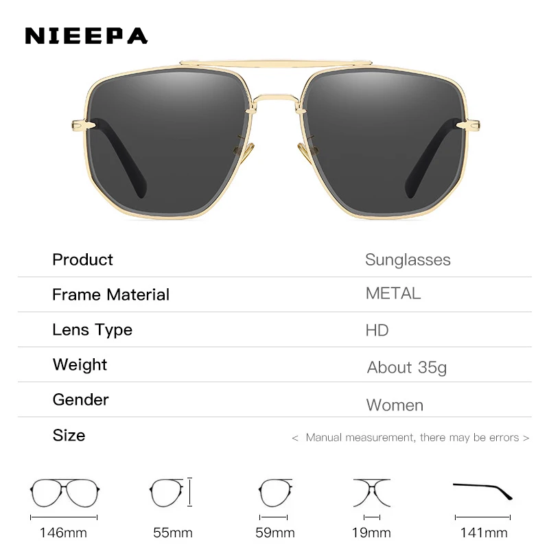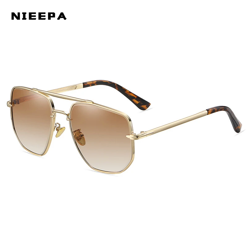 Солнцезащитные очки NIEEPA с двойным мостиком для мужчин и женщин UV-400, поляризационные, в металлической оправе, в стиле ретро, с градиентными линзами