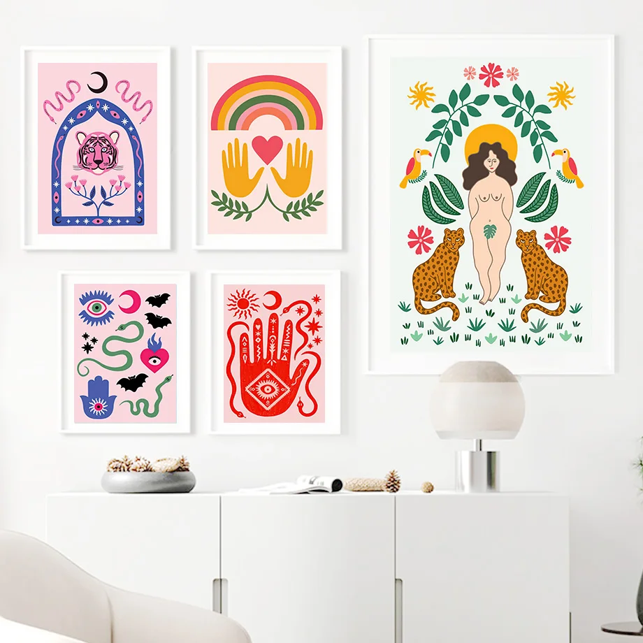 Абстрактная Настенная картина с изображением розового леопарда тигра голубя змеи глаз руки сердца настенная Картина на холсте скандинавские плакаты принты Декор для гостиной
