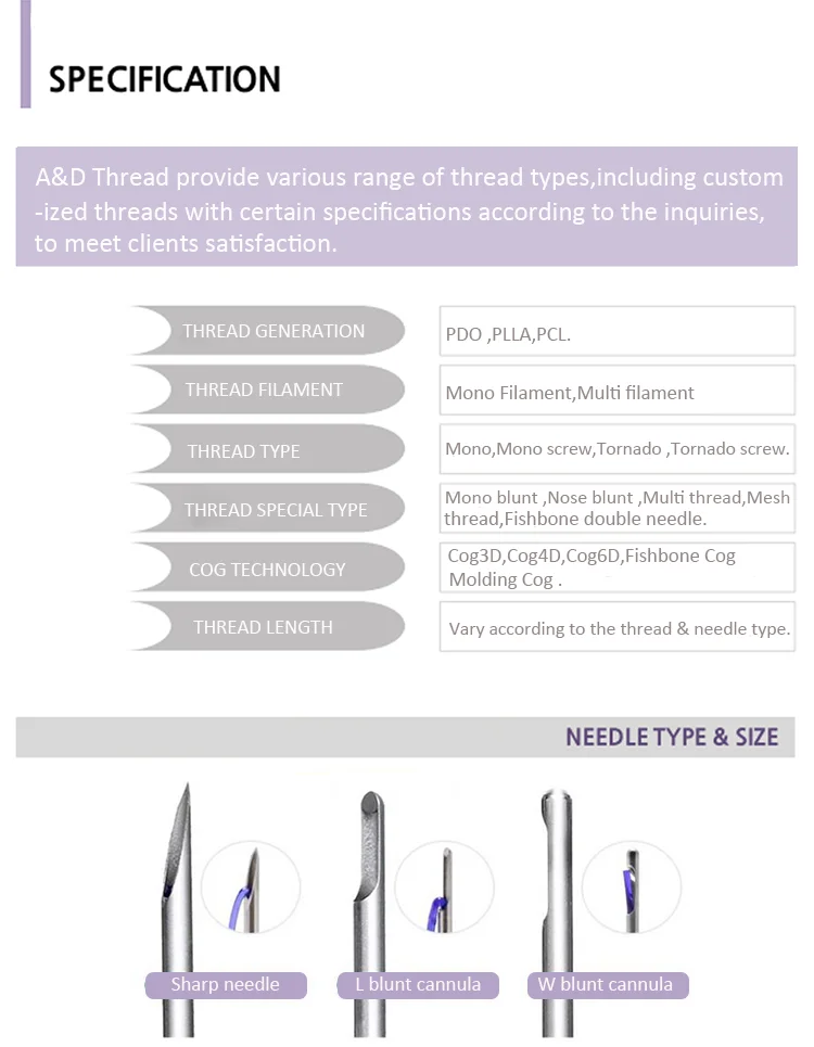 Лидер продаж, Корея, лифтинг для лица, Hilos tenзвуковая игла, моно Cog Pdo Plla Pcl, литьевая нить