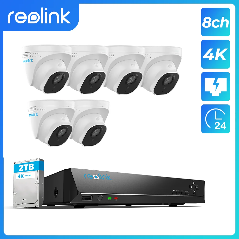 Reolink 4K система безопасности камеры 8CH PoE NVR рекордер и 6 шт 8MP PoE IP камера видеонаблюдения