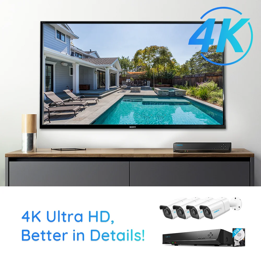 4K Ultra HD (8 Мп, 3840x2160) обеспечивает почти в 4 раза четкость, чем 1080p. Этот превосходный комплект может показать лучшие ключевые детали в яркости, даже когда вы цифровой зум, так что каждая двузначность в видео, которое вы метили ранее, очищается.