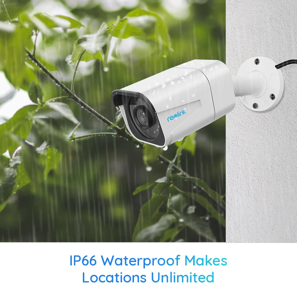 Не беспокойтесь, чтобы поставить эти камеры 4K Ultra HD PoE в любом месте, внутри или снаружи. Благодаря водонепроницаемости IP66 эти камеры никогда не будут уменьшаться перед элементами, такими как морозный дождь, сильный снег, экстремальный Мороз и тепло. D800-это действительно Круглогодичная камера безопасности.