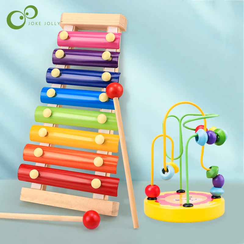Деревянный ксилофон и лабиринт с бусинами для детей, Ранние обучающие игрушки Монтессори для детей, подарок на день рождения и Рождество для мальчиков и девочек