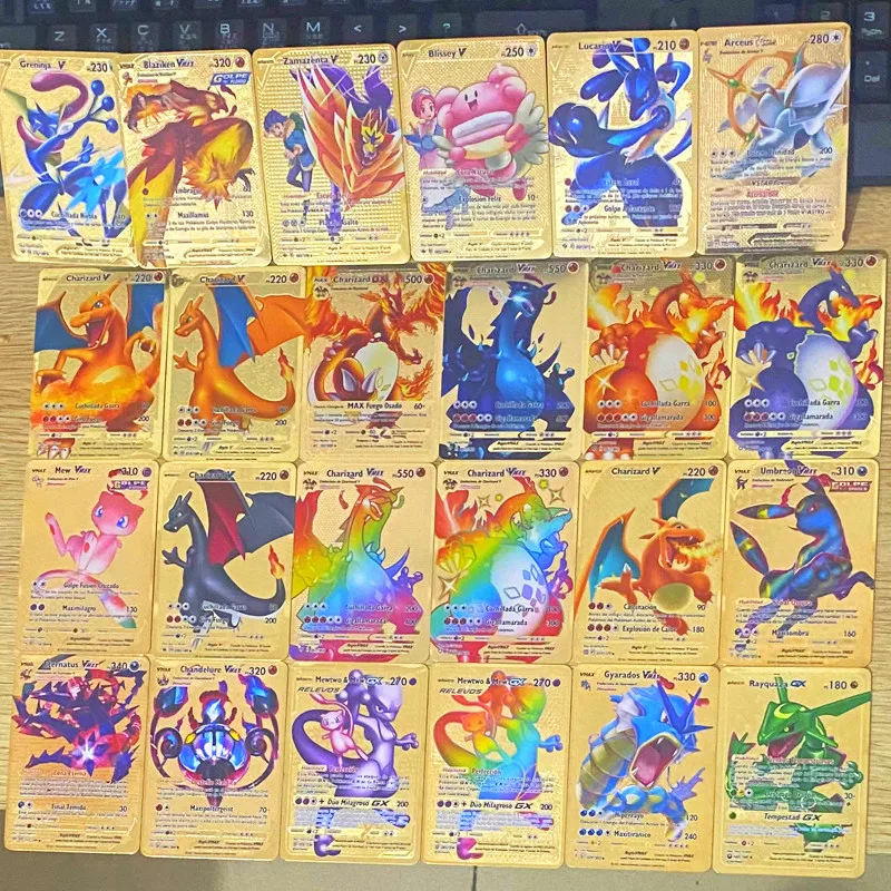 Металлические золотые карточки с покемоном, 27 шт., золотые буквы, ...