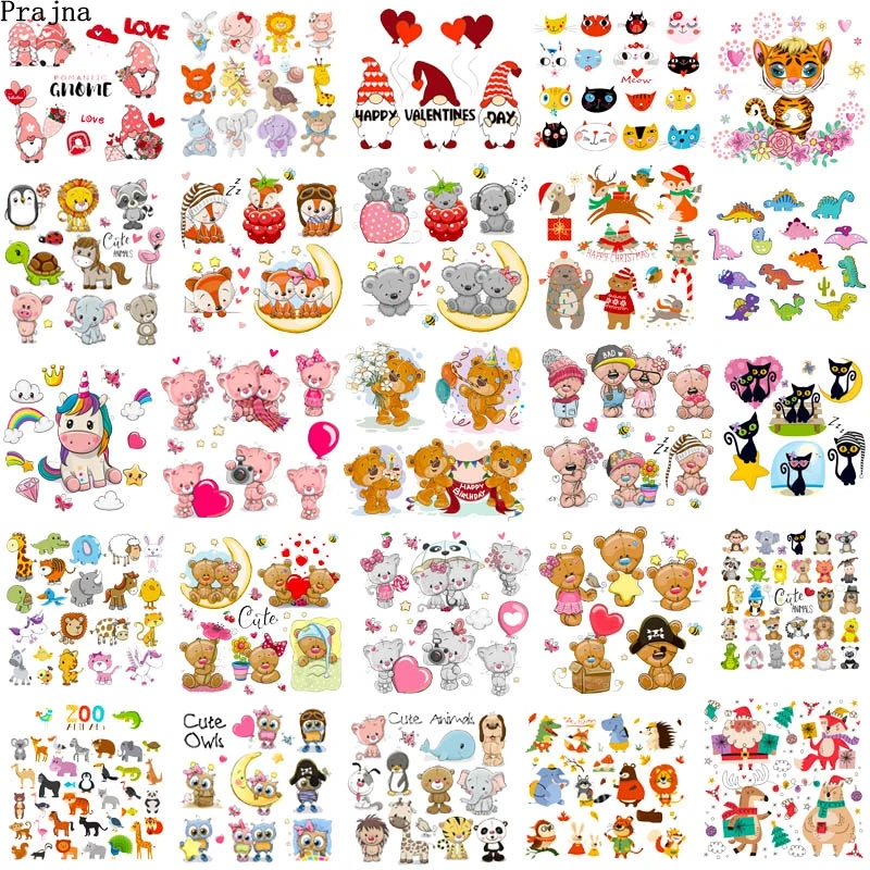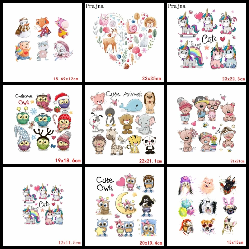 Термотрансферы с мультяшными милыми животными для одежды, аппликаци...