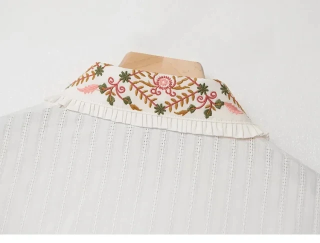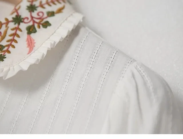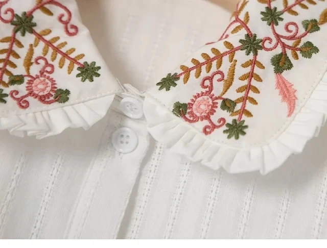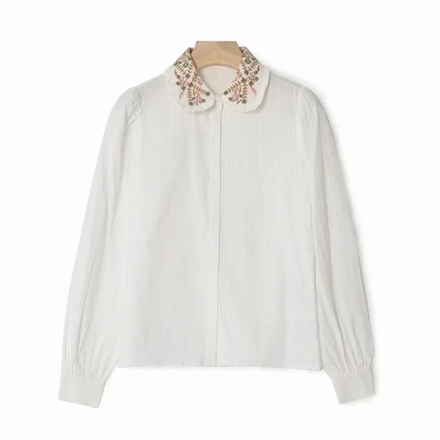 Женская рубашка с цветочной вышивкой на раннюю весну 2022, Женская однобортная блузка с длинным рукавом и отложным воротником, нишевый Топ