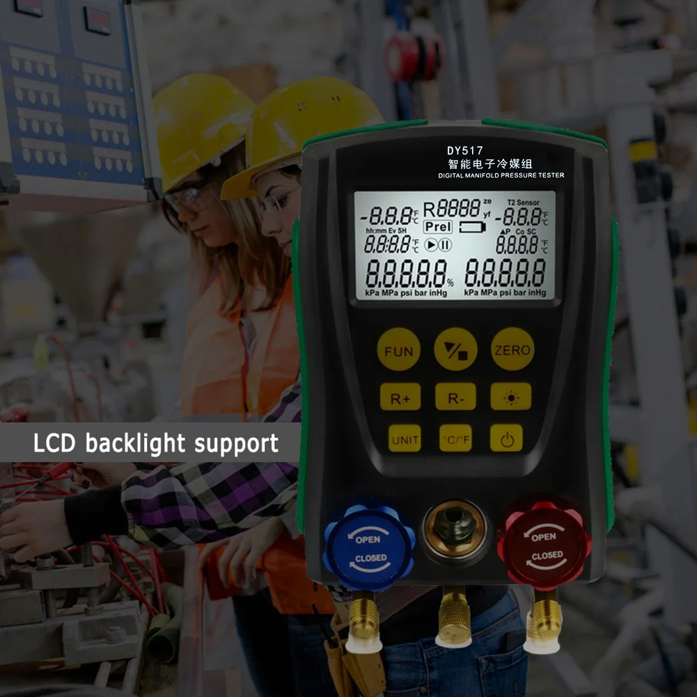 Прибор может измерять двойное давление (манометрическое давление) одновременно, а также двойное измерение температуры (требуется тестовый зажим, не входит в комплект), с автоматическим мульти-единичным преобразованием давления, автоматическое преобразование температуры Цельсия/Фаренгейта, чтобы облегчить различные потребности. Встроенный 89 видов хладагента давления-испарения температуры базы данных, также рассчитать перегрев охлаждения, чтобы облегчить прямое считывание данных рабочих процессов. Также он проверяет процент измерения вакуума; Измерение утечки давления, запись Скорости времени утечки. Заслуживает того, чтобы этот многофункциональный, точный и просто управляемый цифровой коллектор позволял вам делать работу правильно.