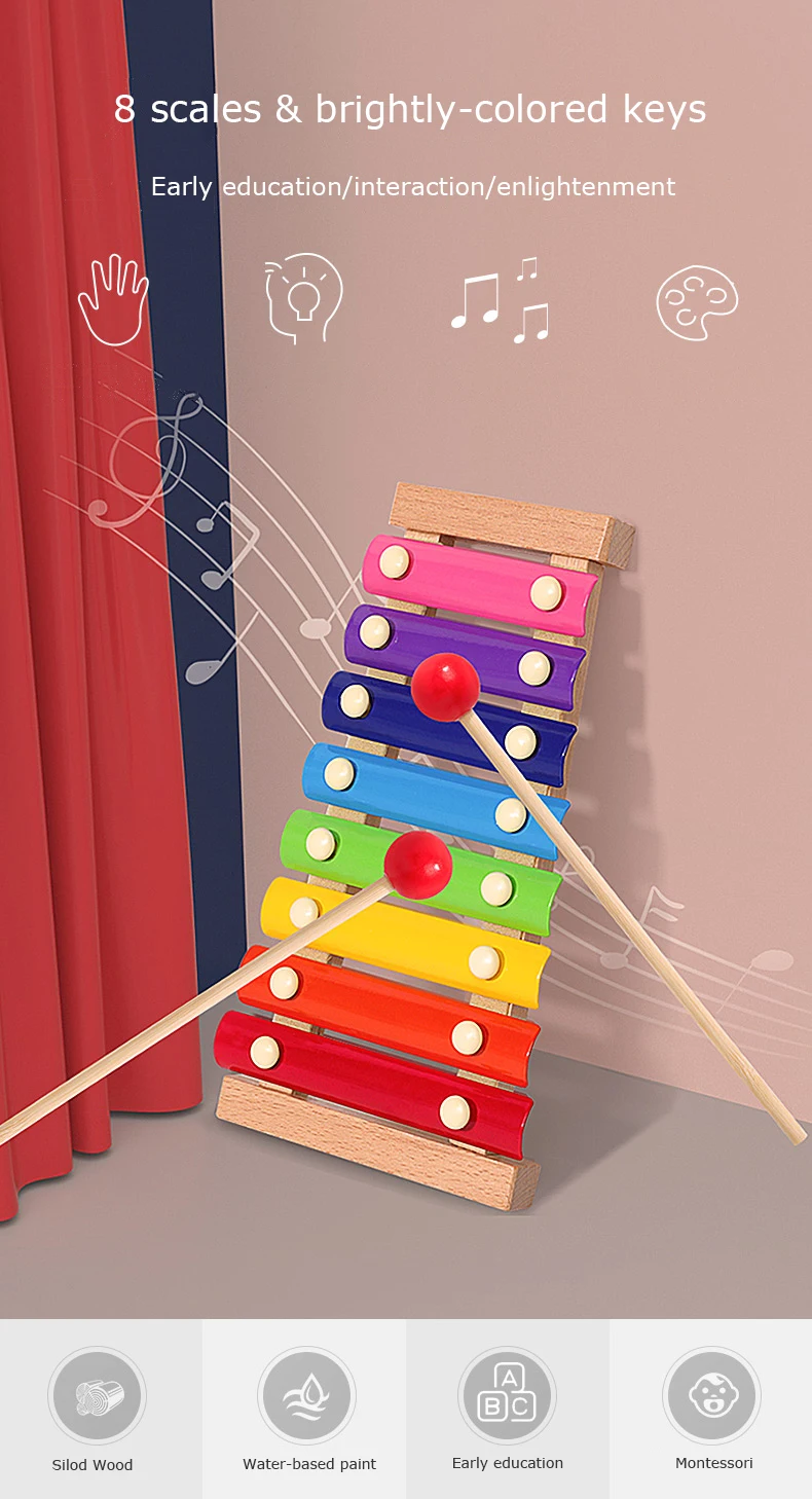 Ксилофон для детей, 8 шкал, детские игрушки Монтессори, Ранние развивающие Музыкальные инструменты, игрушки для малышей