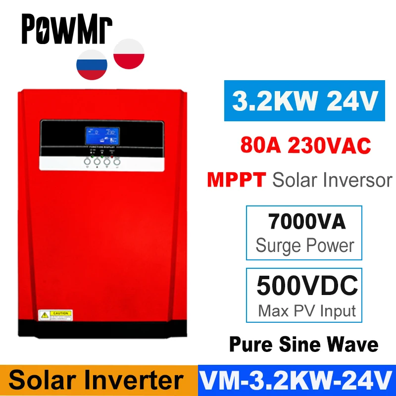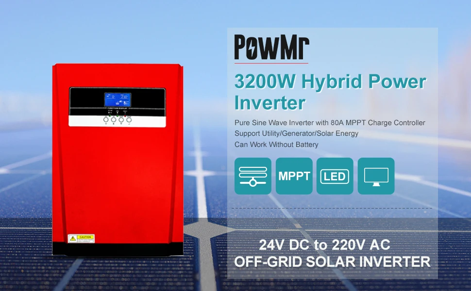 PowMr All-In-One Hybrid Solar Inverter Pure Sine Wave 3200W MPPT 80A Solar Panel Charger 24VDC And AC Charger For Max 4000W 500V