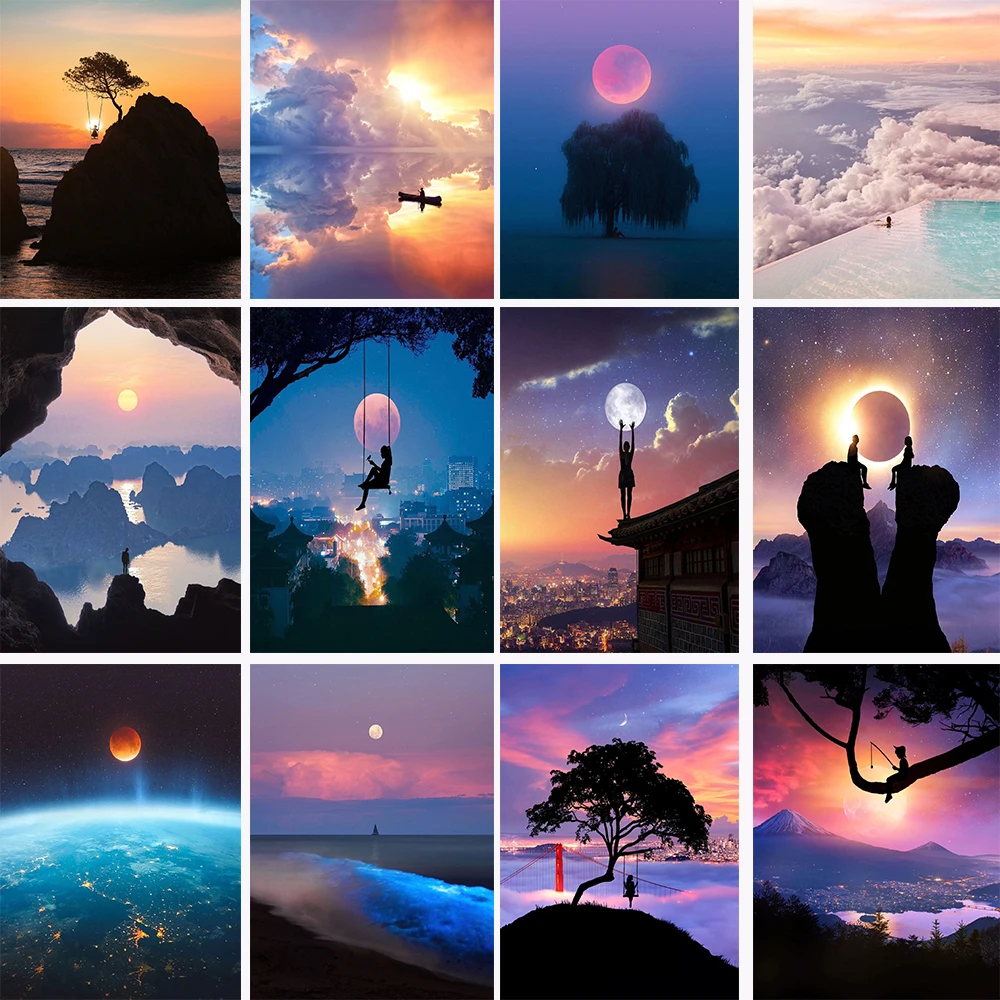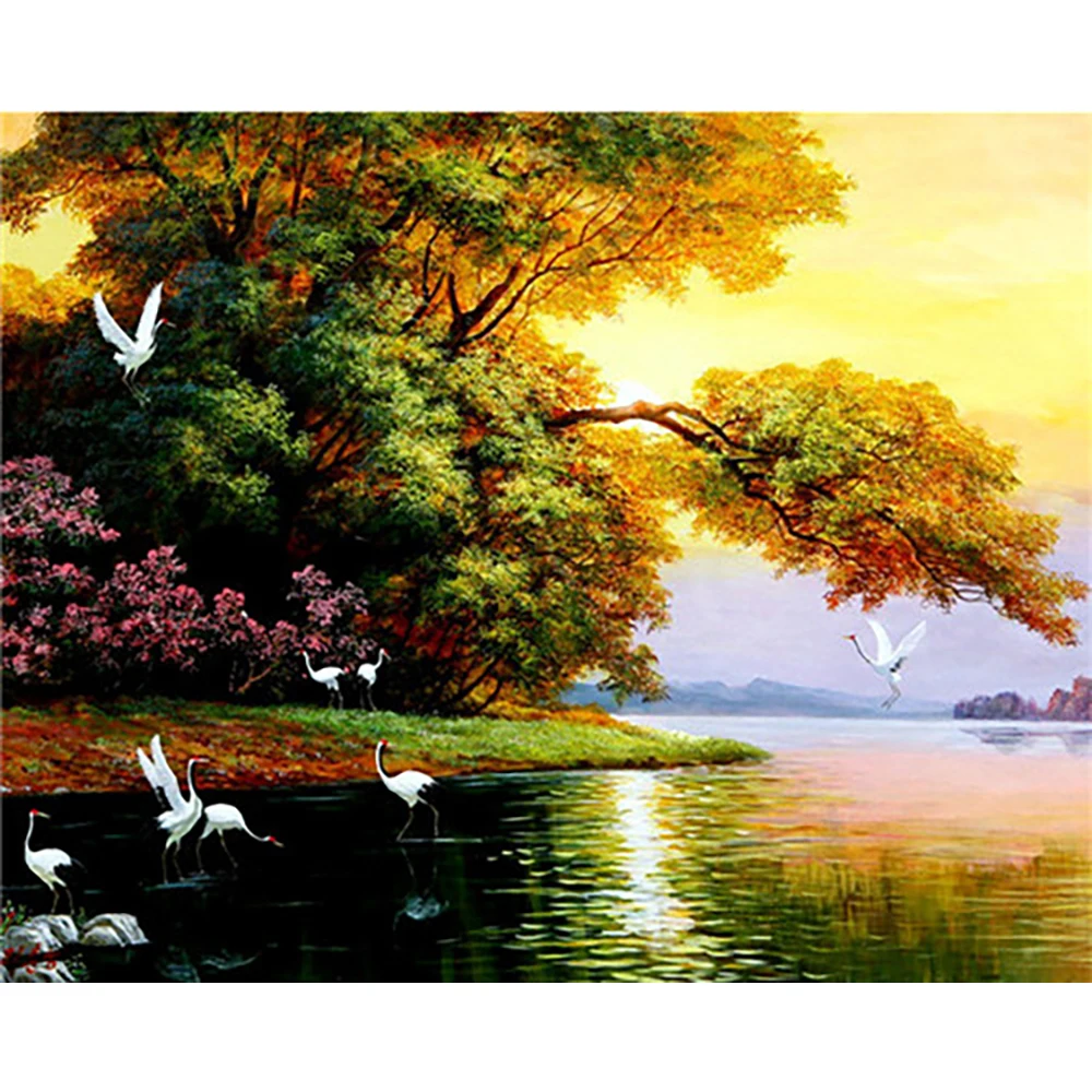 DIY 5D алмазов картина пейзаж в сумерках полный кругкамни в форме р...