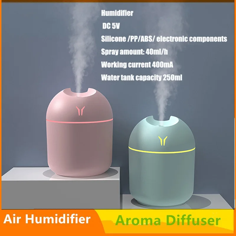 Ультразвуковой увлажнитель воздуха, арома-распылитель, USB, диффузор эфирного масла, распылитель тумана, мини домашний, для спальни, автомобиля, Электрический ОчистительХарактеристика:1. Тихий: бегать тихо. Это не будет разрушительным во время сна.2. 250 мл большой емкости, пронизывающий и увлажняющий.3. Автоматическая защита от отключения питания для предотвращения сухого горения.4. Мини-размер, легкий вес, компактная конструкция и легко носить с собой.Спецификация:Цвета: белый, синий, розовый.Название: увлажнитель воздуха.Рабочее напряжение: 5 В постоянного токаМатериал: силикон/ПП/АБС/электронные компонентыКоличество распыления: 40 мл/чРабочий ток: 400 мАЕмкость резервуара для воды: 250 млВремя использования: 4-8 чИсточник питания: USBПрименимая площадь: 10-20 квадратных метровШум: Менее 36 дБПримечание:В связи с различиями мониторов и эффектами освещения реальный цвет товара может немного отличаться от цвета на фотографиях. Спасибо!Возможны отклонения в 1-2 см вследствие измерений вручную.