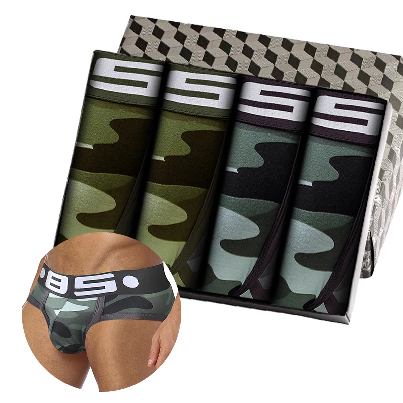 Мужские камуфляжные трусы C, мягкие трусы-джоки, сексуальное нижнее белье для мужчин, дышащие сетчатые трусы, 4 шт.