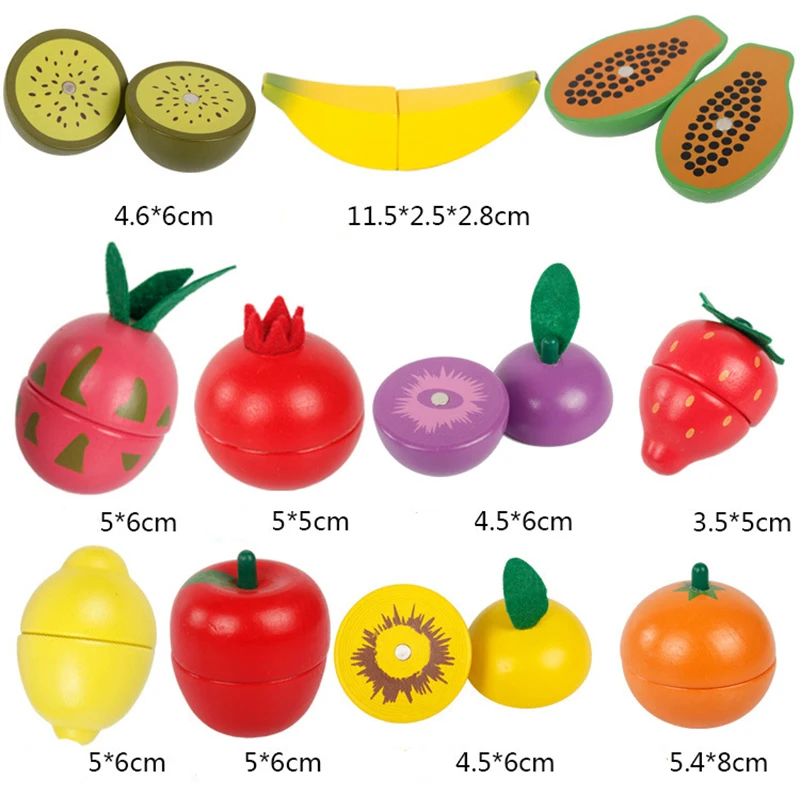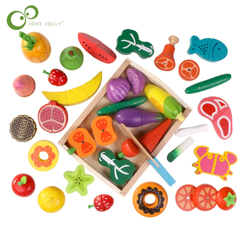 Деревянная имитация кухонных игрушек, классический набор фруктов и овощей для резки, Ранняя развивающая игрушка Монтессори для детей, подарок DDJ