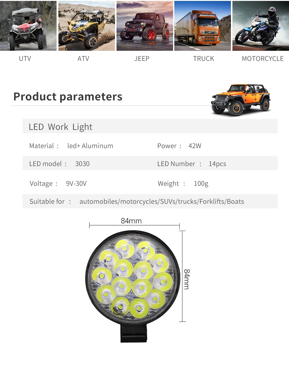 2 шт. 14 светодиодов 42 Вт точечный светсветильник льник для внедорожника супер яркие противотуманные фары для вождения лодки s фасветильник для вождения s светодиодные рабочие фары для грузовиков