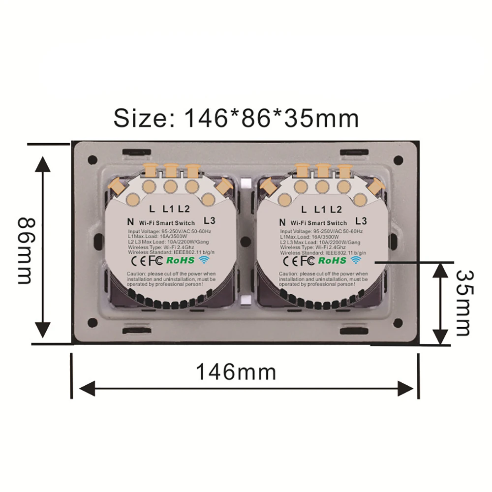 Сенсорный выключатель AXUS TUYA, панель из хрустального стекла, 146...