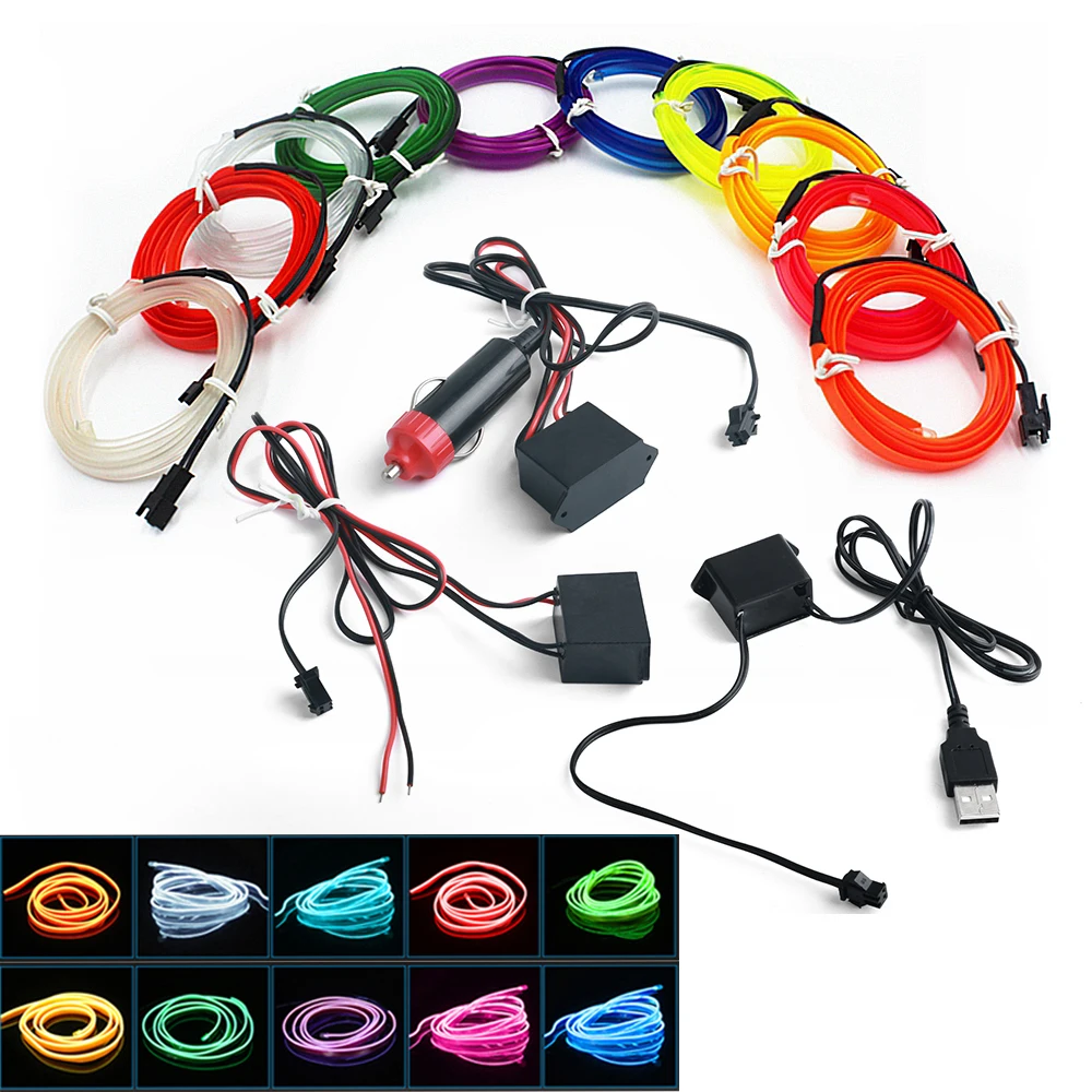 1 м/2 м/3 м/5 м неоновый светильник авто Декор автомобиля полоса окружающий светодиодный светильник Гибкий EL провод веревка трубка интерьер атмосфера Ac
