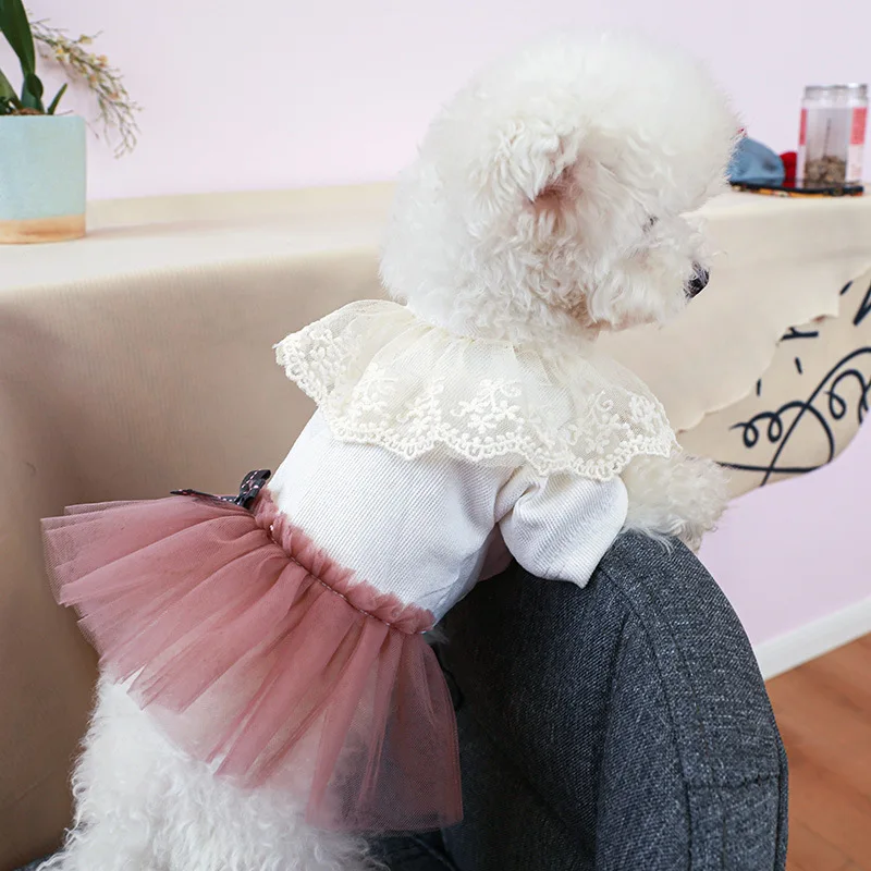 Модное платье для собаки теплая зимняя одежда XXS кружевное милое п...