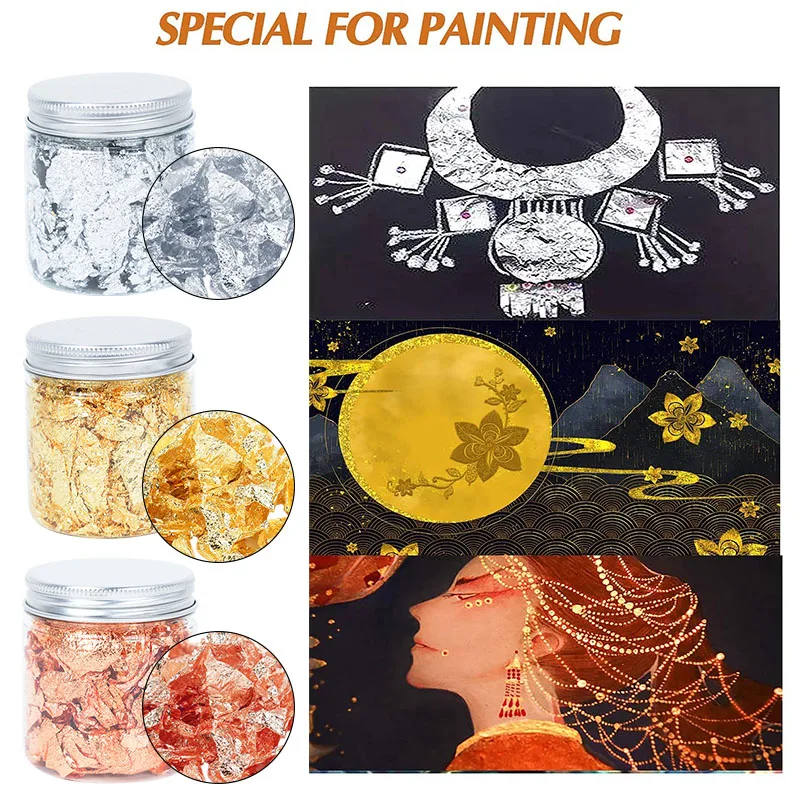 Золотистые и Серебристые листья 3 г из фольги для творчества, позолоченные хлопья, конфетти для рисования, искусства, декоративные материалы для дизайна ногтей, домашний Свадебный декор