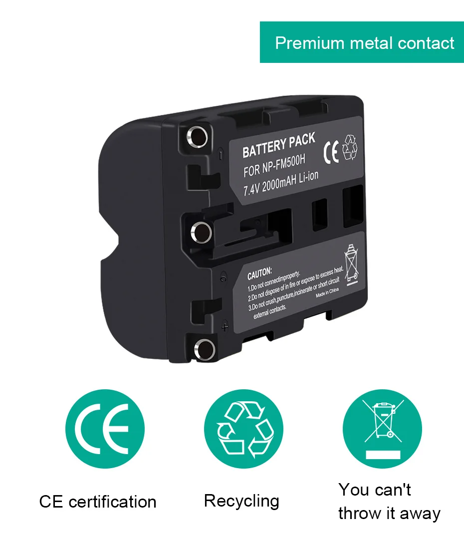 Характеристики:◆Model: NP-FM500H◆Capacity: 2200 мА-ч◆Voltage: 7,2 V◆Тип: литий-ионный◆ Цвет: черныйСовместимость с:Для Sony-SLT-A57-SLT-A58-SLT-A65-SLT-A65V-SLT-A77-SLT-A77V-SLT-A99-CLM-V55-DSLR-A100-DSLR-A200-DSLR-A300-DSLR-A350-DSLR-A450-DSLR-A500-DSLR-A550-DSLR-A560-DSLR-A580-DSLR-A700-DSLR-A850-DSLR-A900Посылка включает в себя: (зависит от вашего выбора)● 1/ 2/ 3/ 4x NP-FM500H Батарея● 1 зарядное устройство с● 1x USB кабель100% новый товар высокого качества.Особенности:☆【Универсальный метод зарядки 】:Общий вход micro-USB и порт Type-c, его можно заряжать через автомобильное зарядное устройство, настенное зарядное устройство или даже внешний аккумулятор и ноутбук☆【Интеллектуальная система защиты 】:Встроенная защита от нескольких замыканий (перезарядка, короткое замыкание, высокая температура и защита от перенапряжения) и высококачественная огнестойкая конструкция.Предостережения:Charge зарядите аккумулятор перед использованием▲Держите клеммы аккумулятора в чистоте▲Всегда Держите батарею в сухом месте▲Do не микросхема с защитой от короткого замыкания батареи▲Do не разбирать батарейный блок▲Не подвергайте аккумулятор воздействию высоких температур