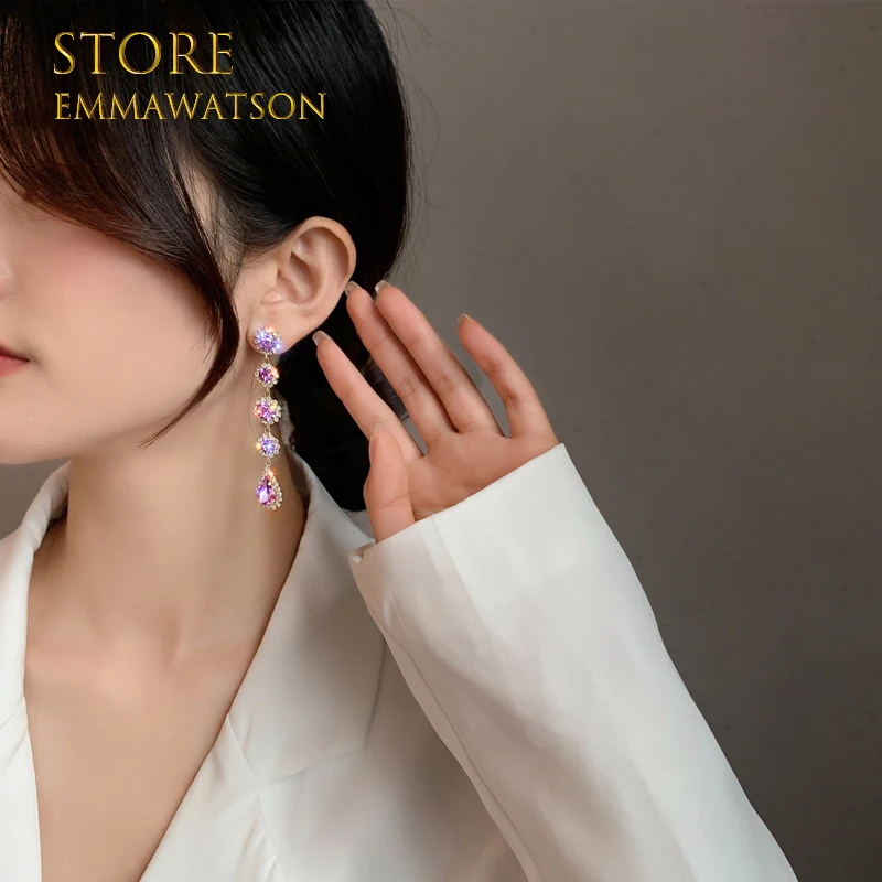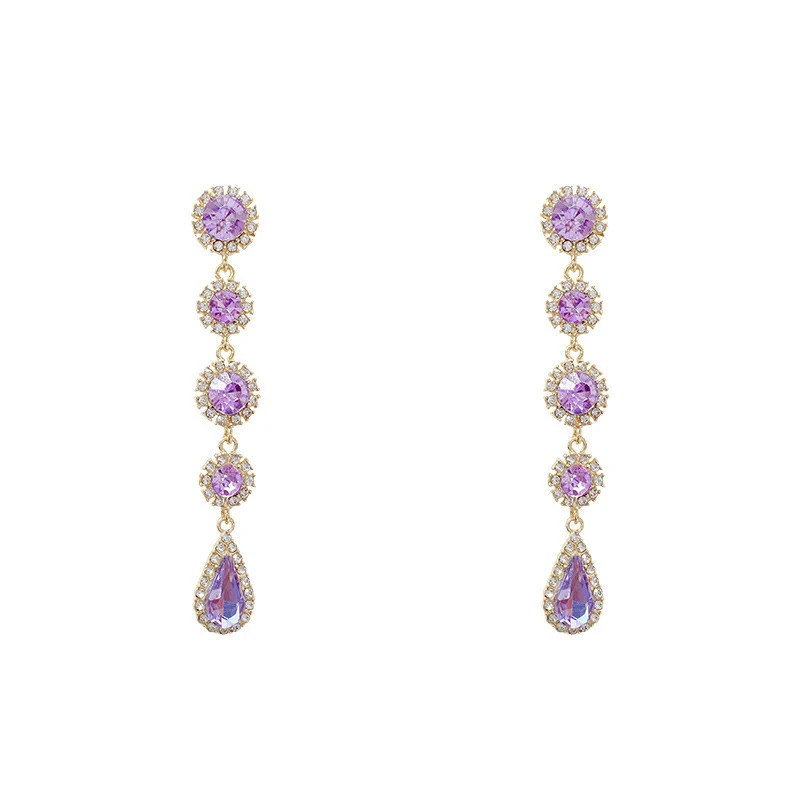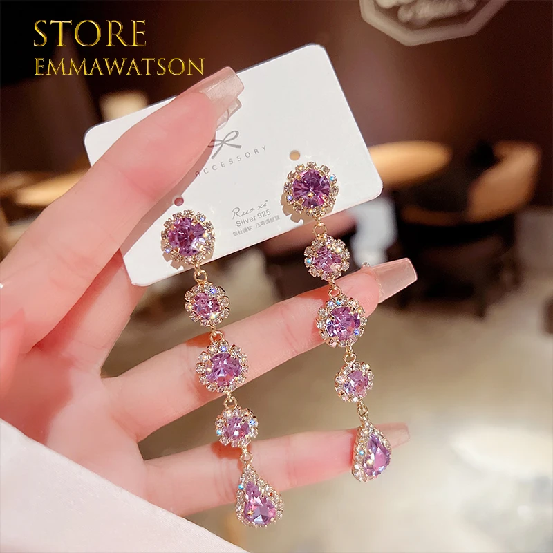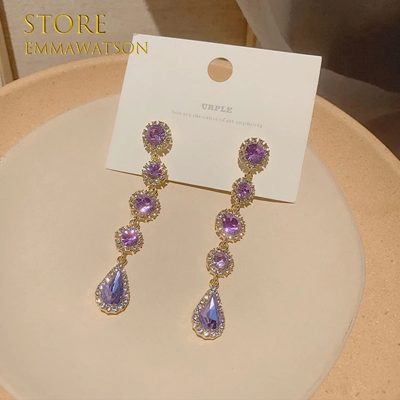 Новинка 2022, модные длинные висячие серьги с фиолетовым драгоценным камнем и жемчугом для женщин, Винтажные Украшения для вечеринки и свадьбы