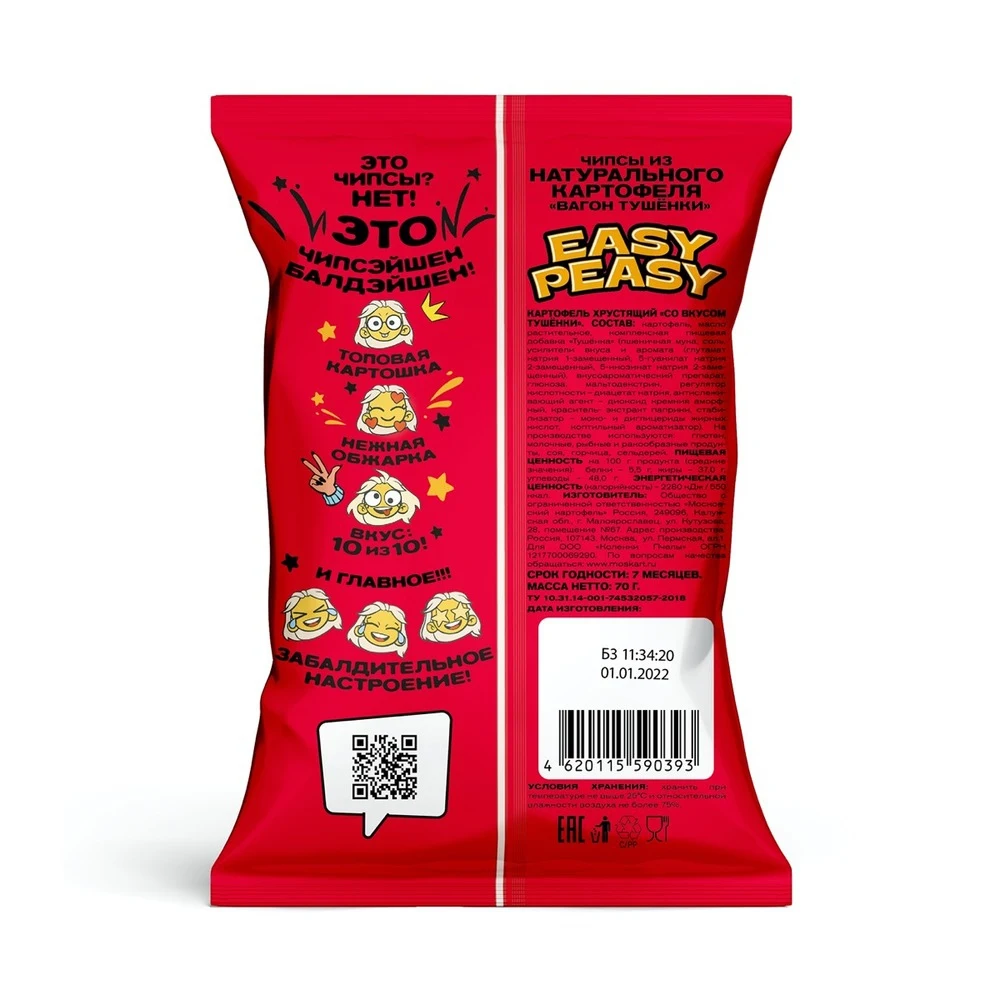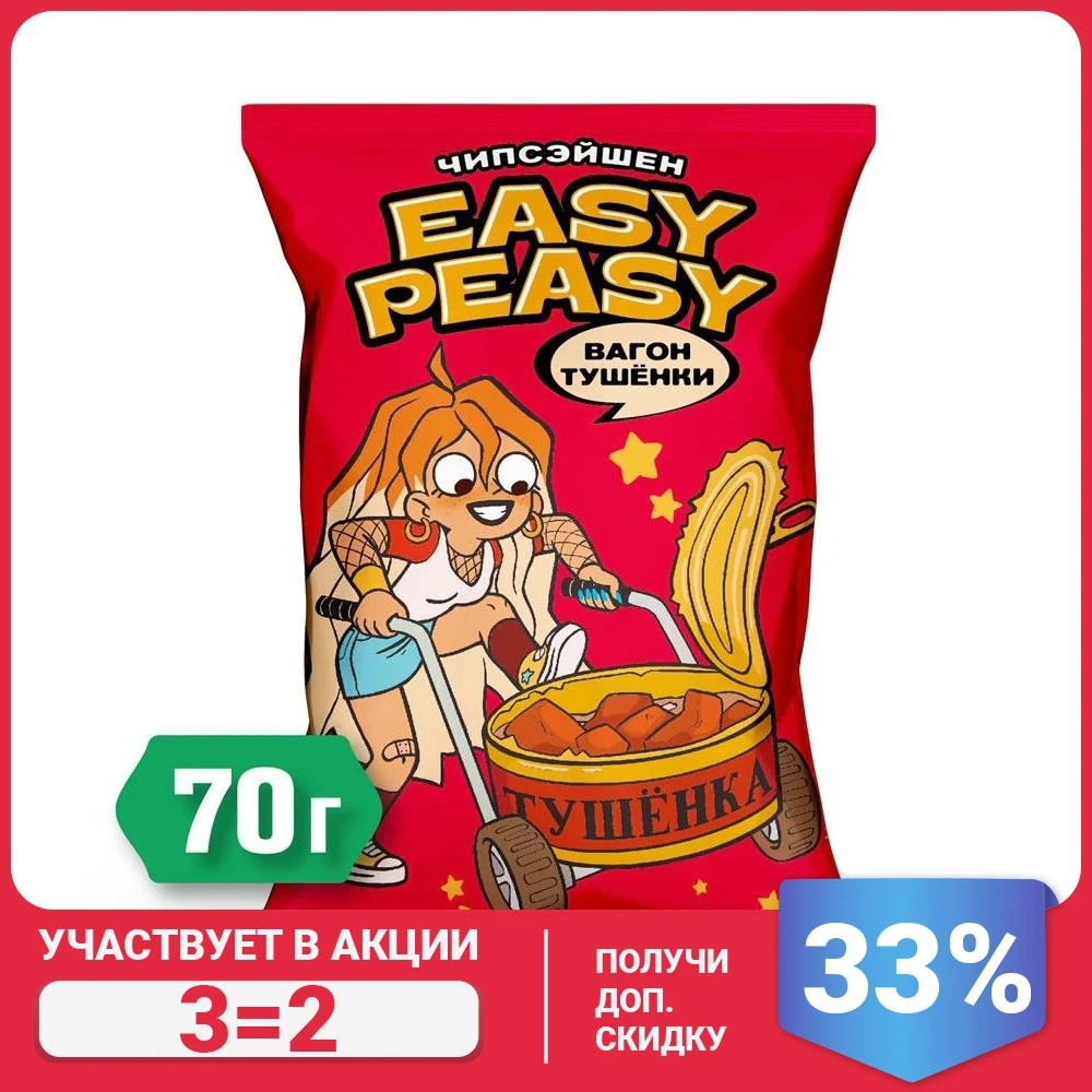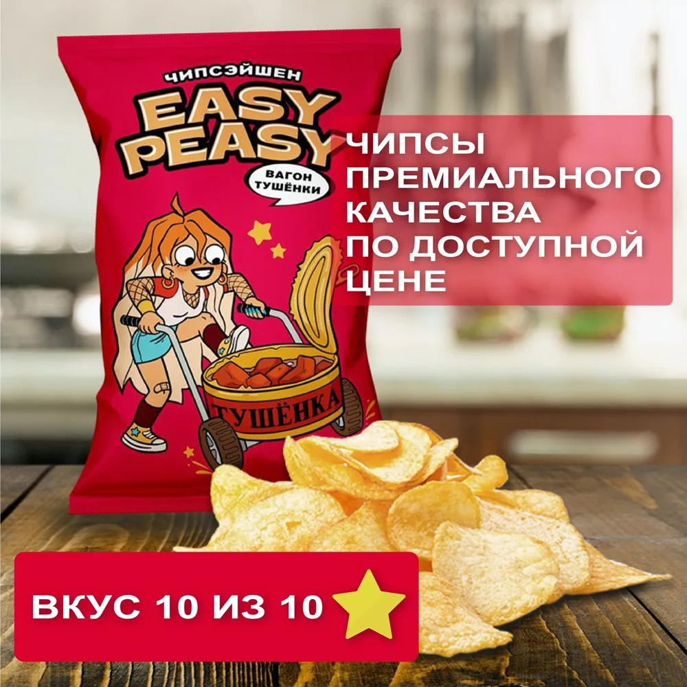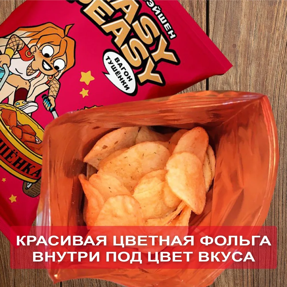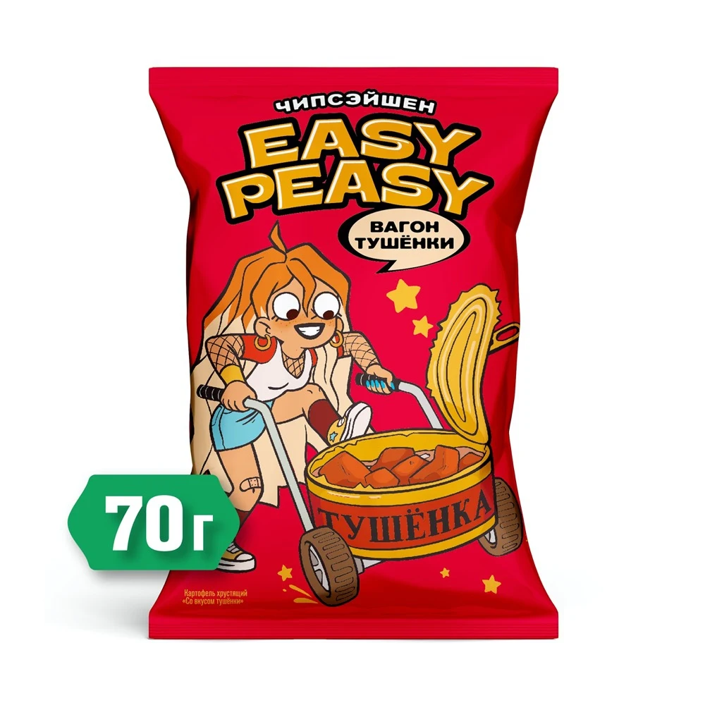 Картофельные чипсы Easy Peasy со вкусом тушёнки, "ВАГОН ТУШЁНКИ", 70 г
