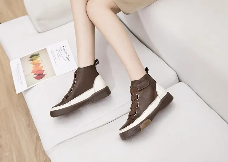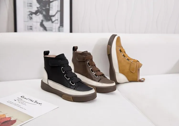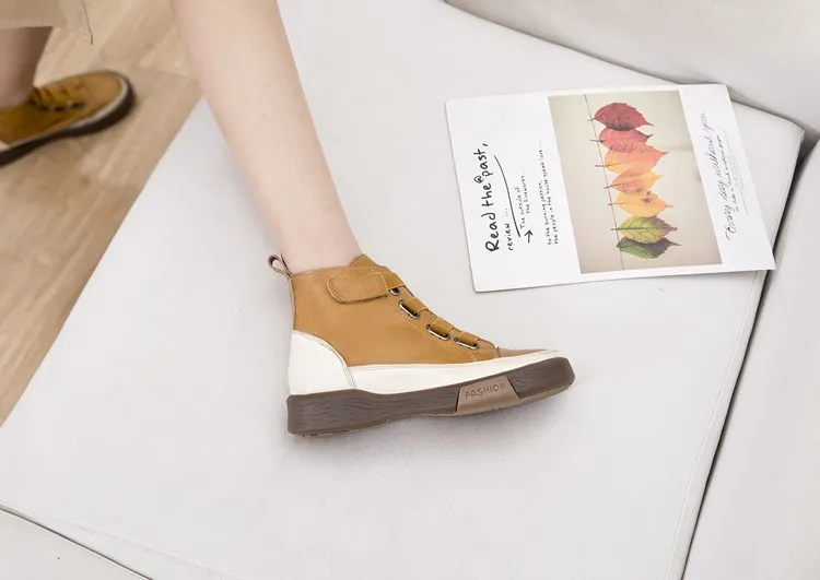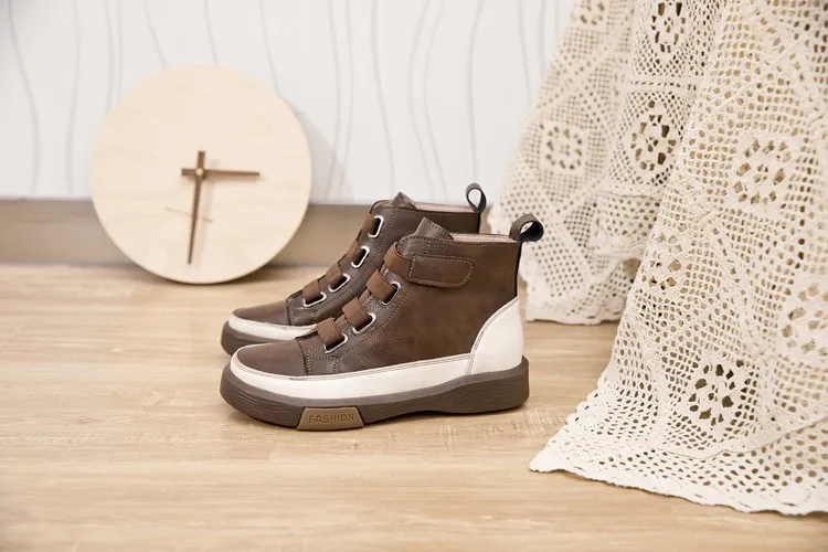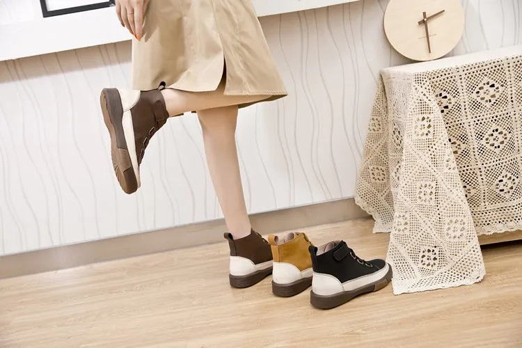 Женские зимние ботинки AIYUQI из натуральной кожи, на плоской подошве, под старину, с завязкой спереди, 2022