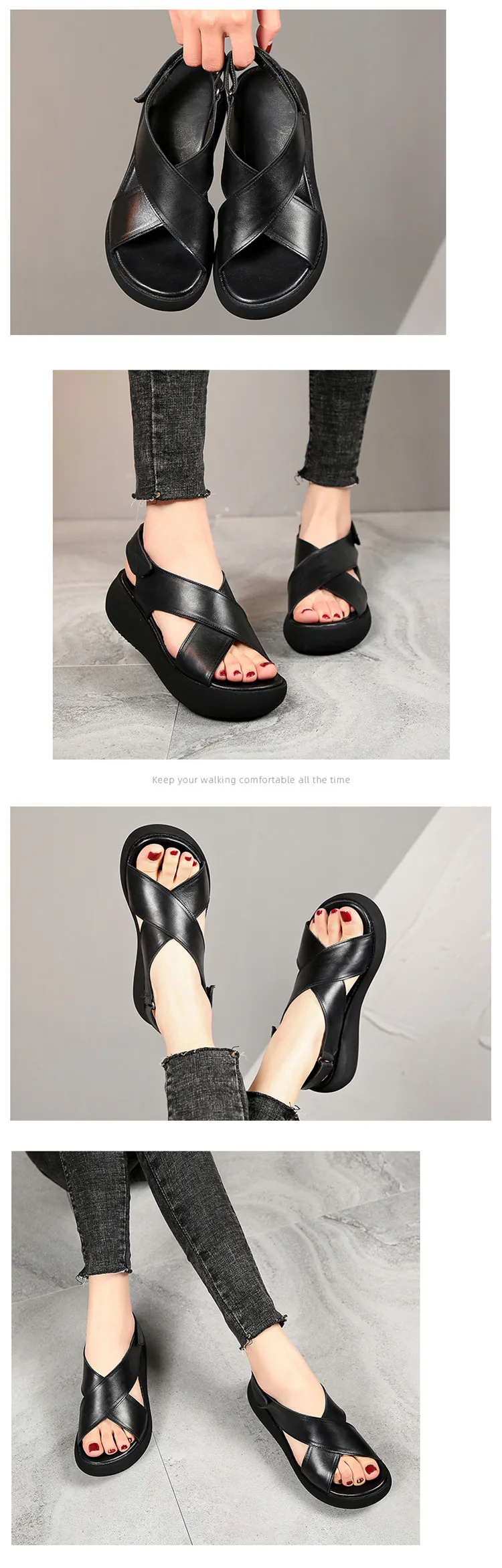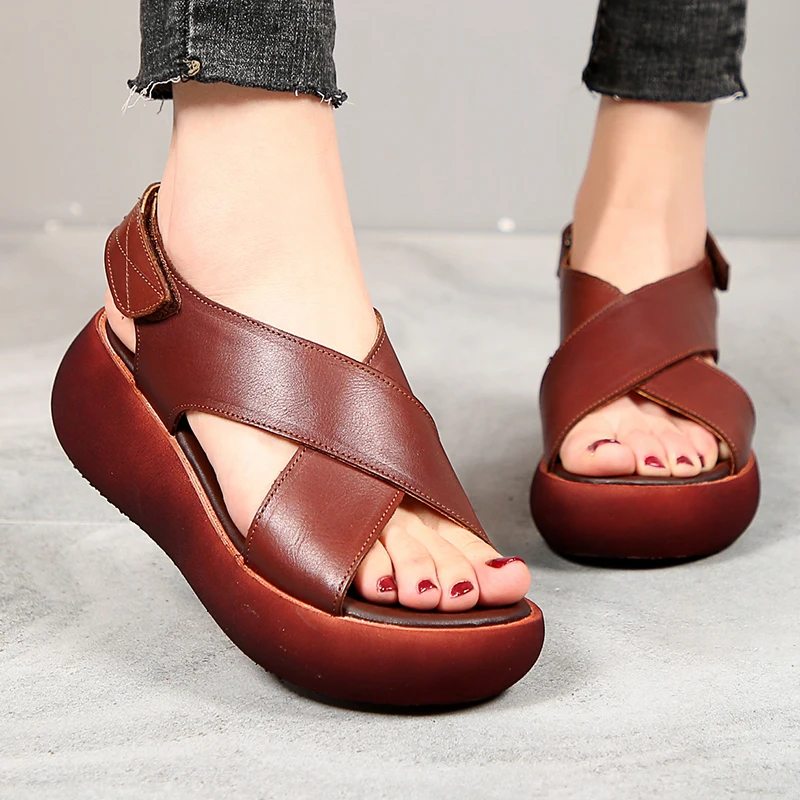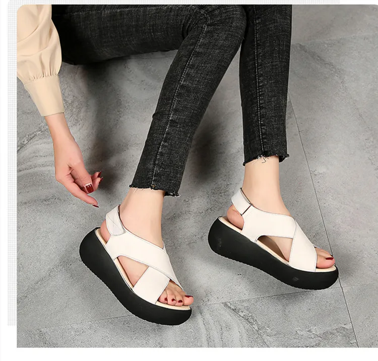 Женские босоножки из натуральной кожи AIYUQI, сандалии на платформе в стиле ретро, модная повседневная Летняя обувь, 2022