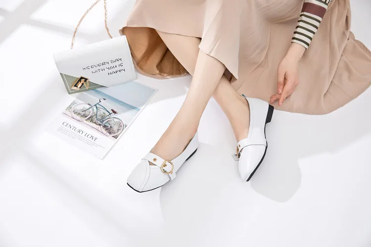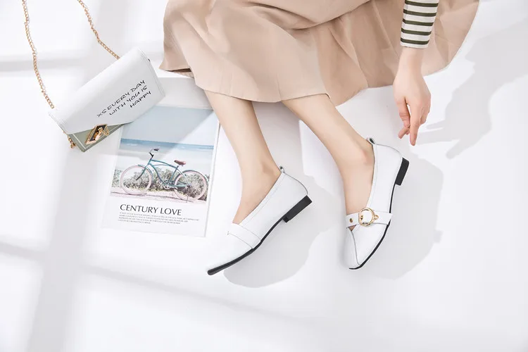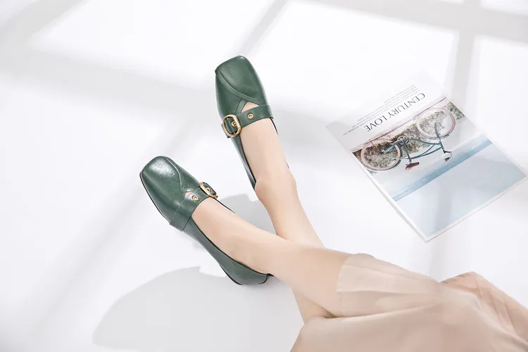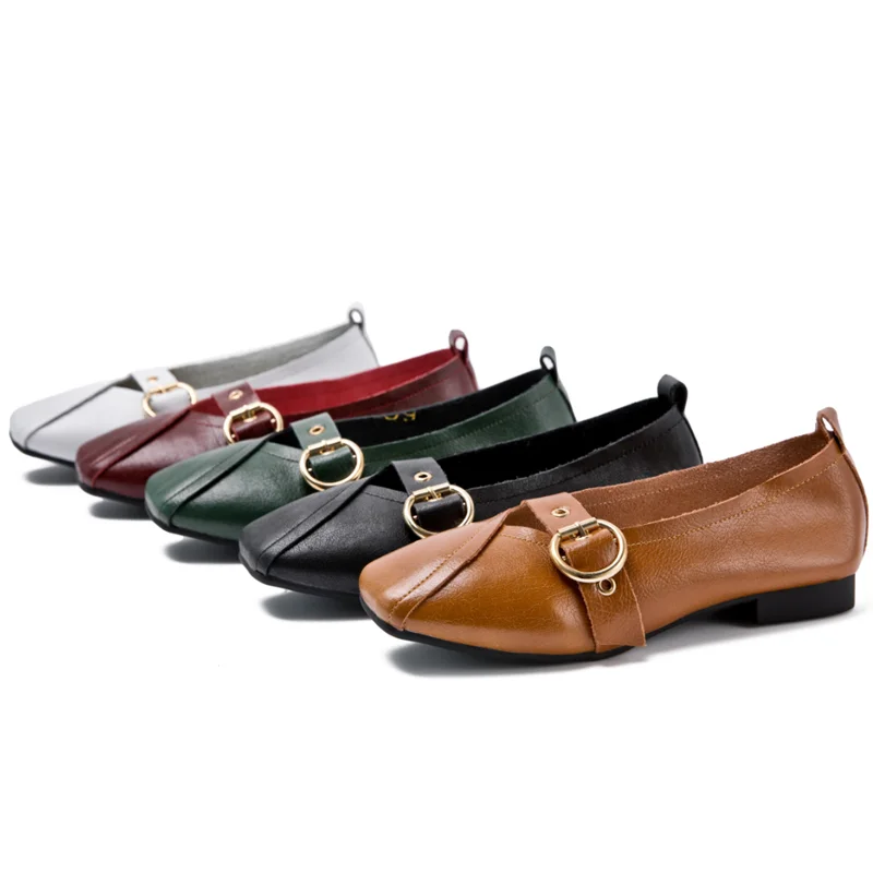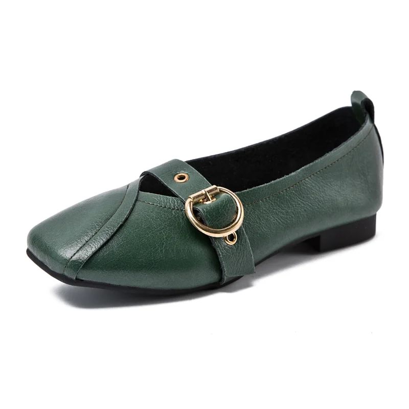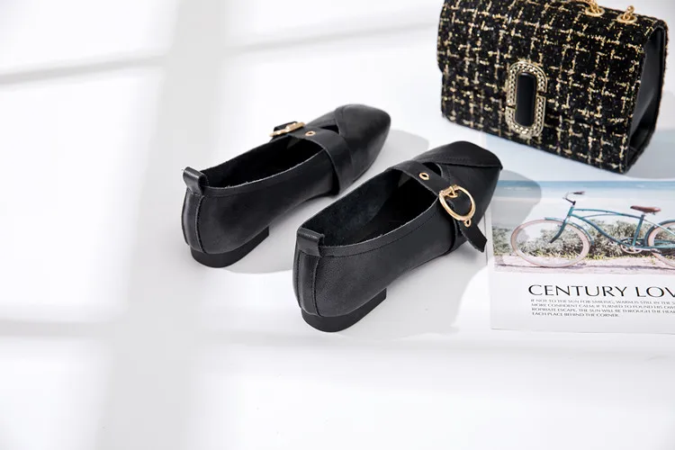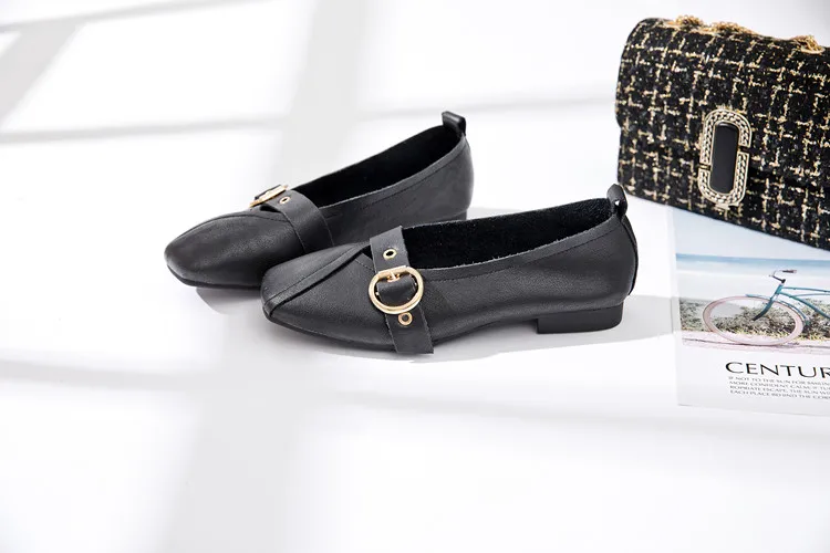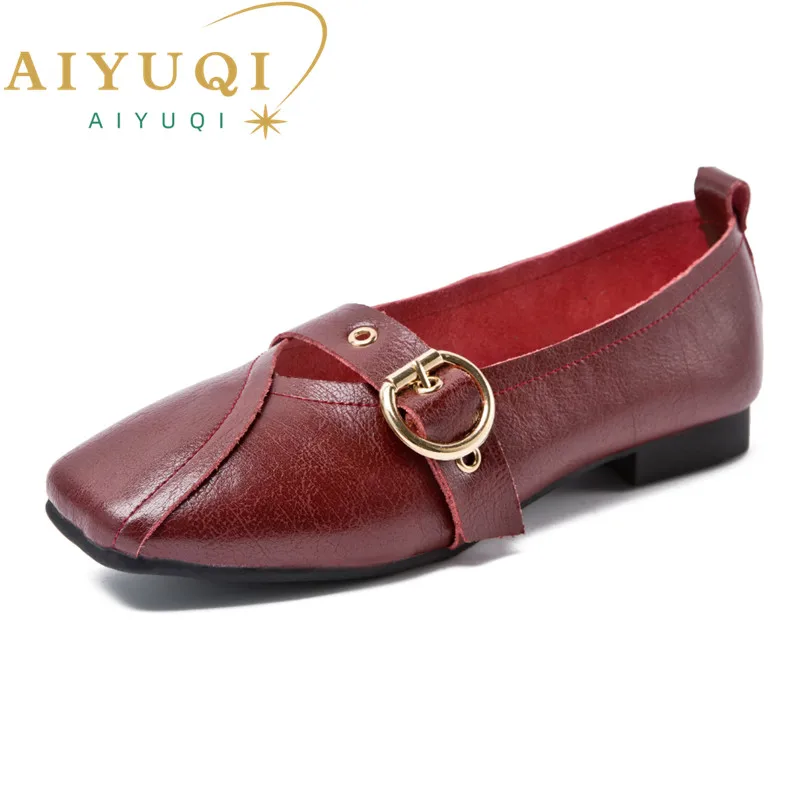Женские туфли AIYUQI из натуральной кожи, на плоской подошве, удобные туфли с квадратной пряжкой, большие размеры, 2022
