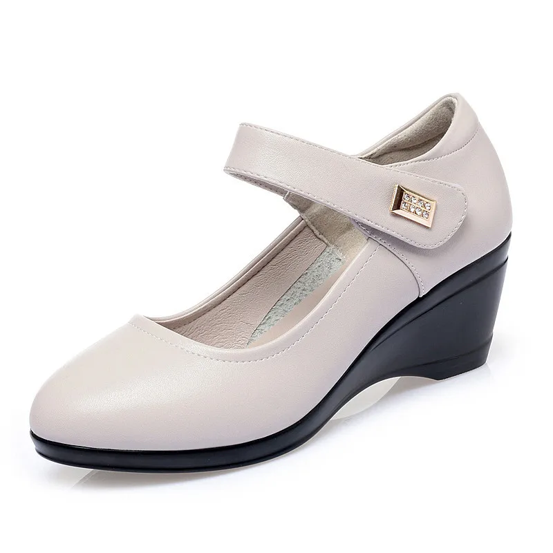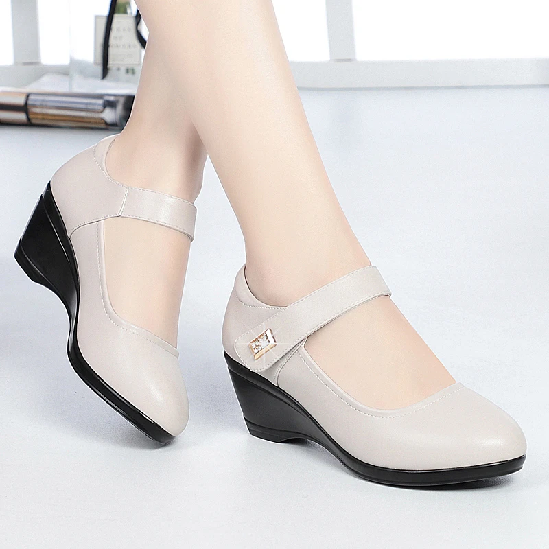 Туфли для мам на высоком каблуке на танкетке Новинка 2022 Осенняя женская обувь с круглым носком женские туфли среднего возраста с закрытым носком